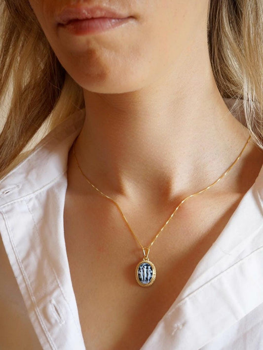 The Three Graces Blue cameo necklace, made in Italy, gift for her, agate genuine Italian cameo, cameo set, cameo necklace, friendship neckla