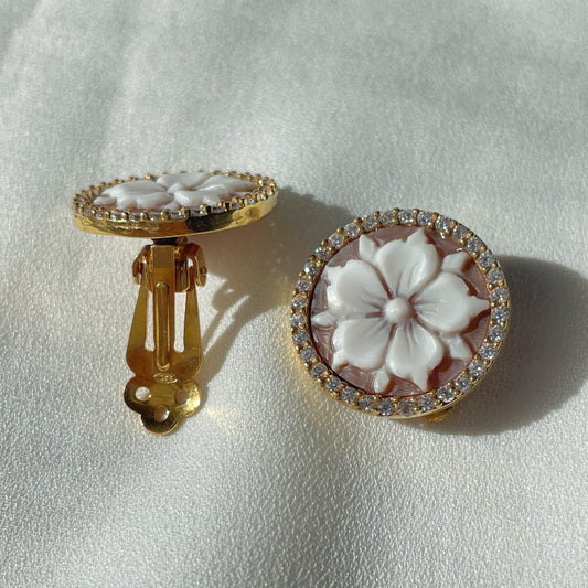 Clip-On Cameo earrings, 18kt gold drop earrings, Cameo earrings, floral earrings, glam earrings, wedding, bridal jewelry, made in Italy, mom