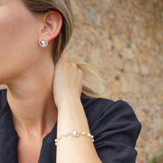 18K gold earrings, Cameo earrings, wedding anniversary gift, bridal jewelry, custom unique gift, camée, waterproof stud earrings, Italian