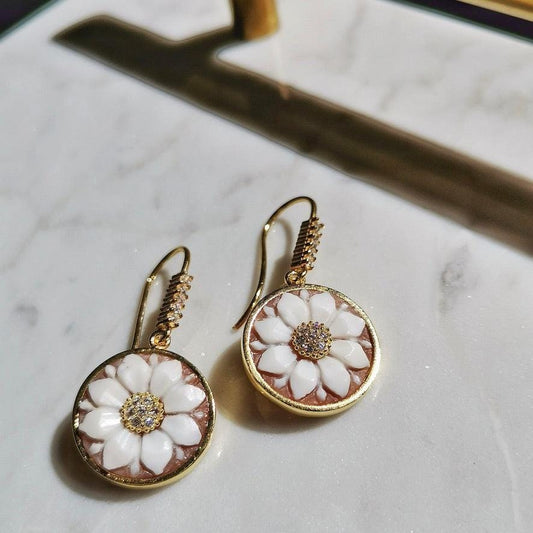 Floral Cameo earrings, drop earrings, glam earrings, made in Italy, custom gift for her, bridal jewellery, pearl earrings, flower jewelry