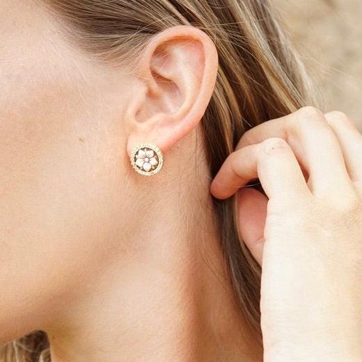 Cameo rose earrings earrings, gold stud earrings, anniversary, wedding gift, made in Italy, rose jewellery, minimalist golden earrings, mom