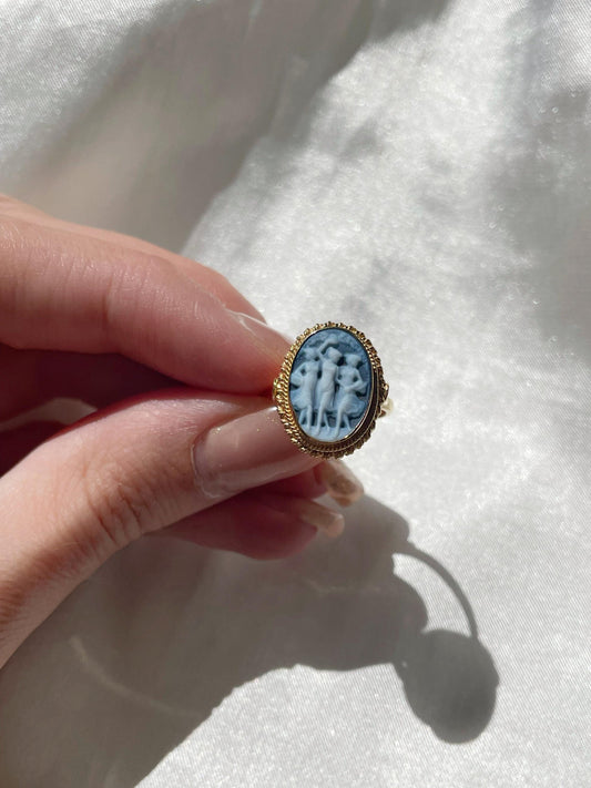 Blue cameo ring, 18K gold, The Three Graces, adjustable ring, silver sterling 925, gift for her, made in Italy, Charites, free shipping, mom