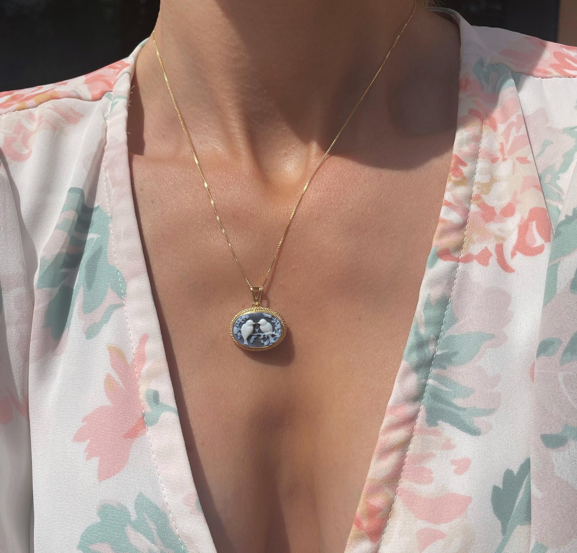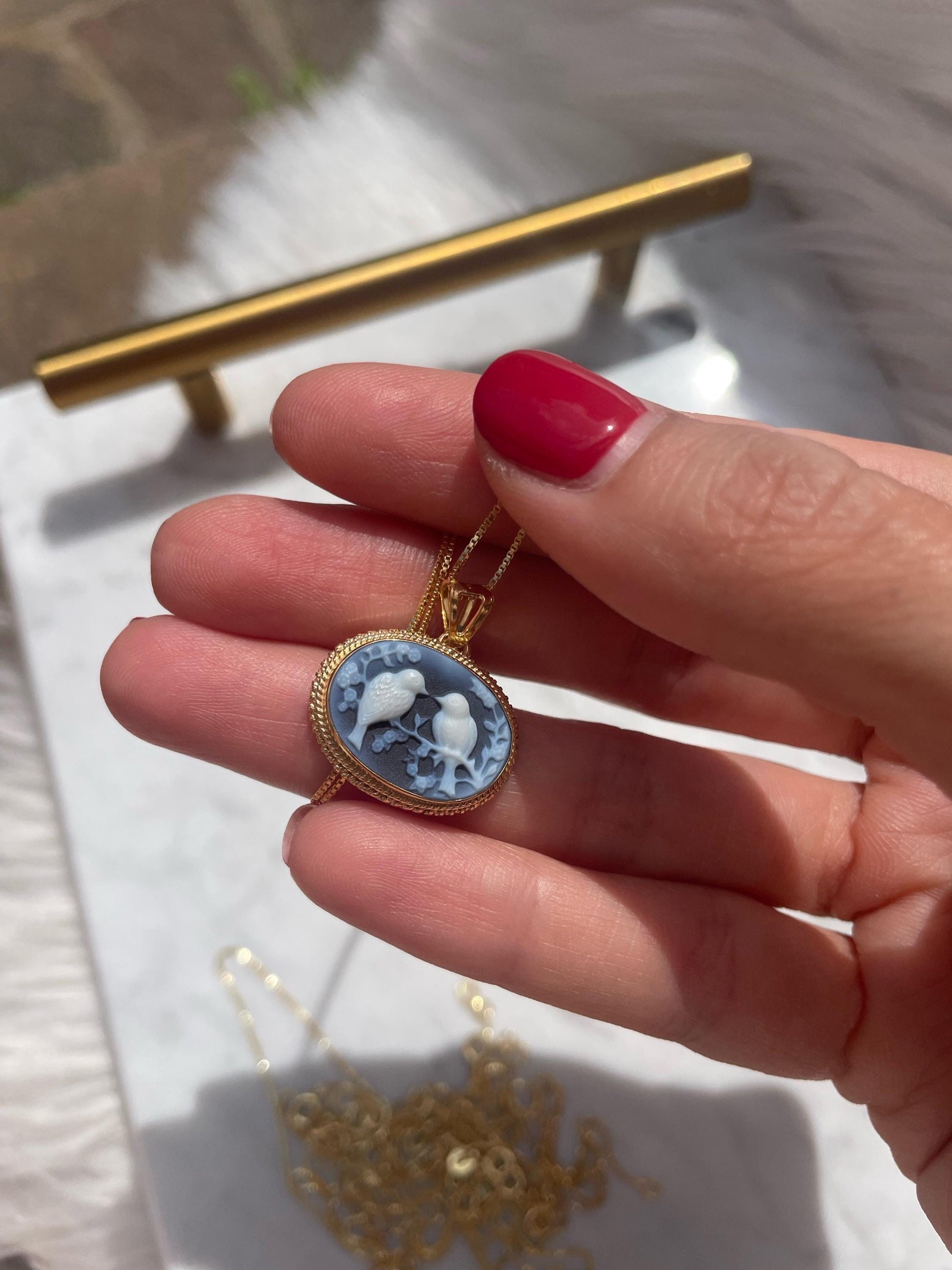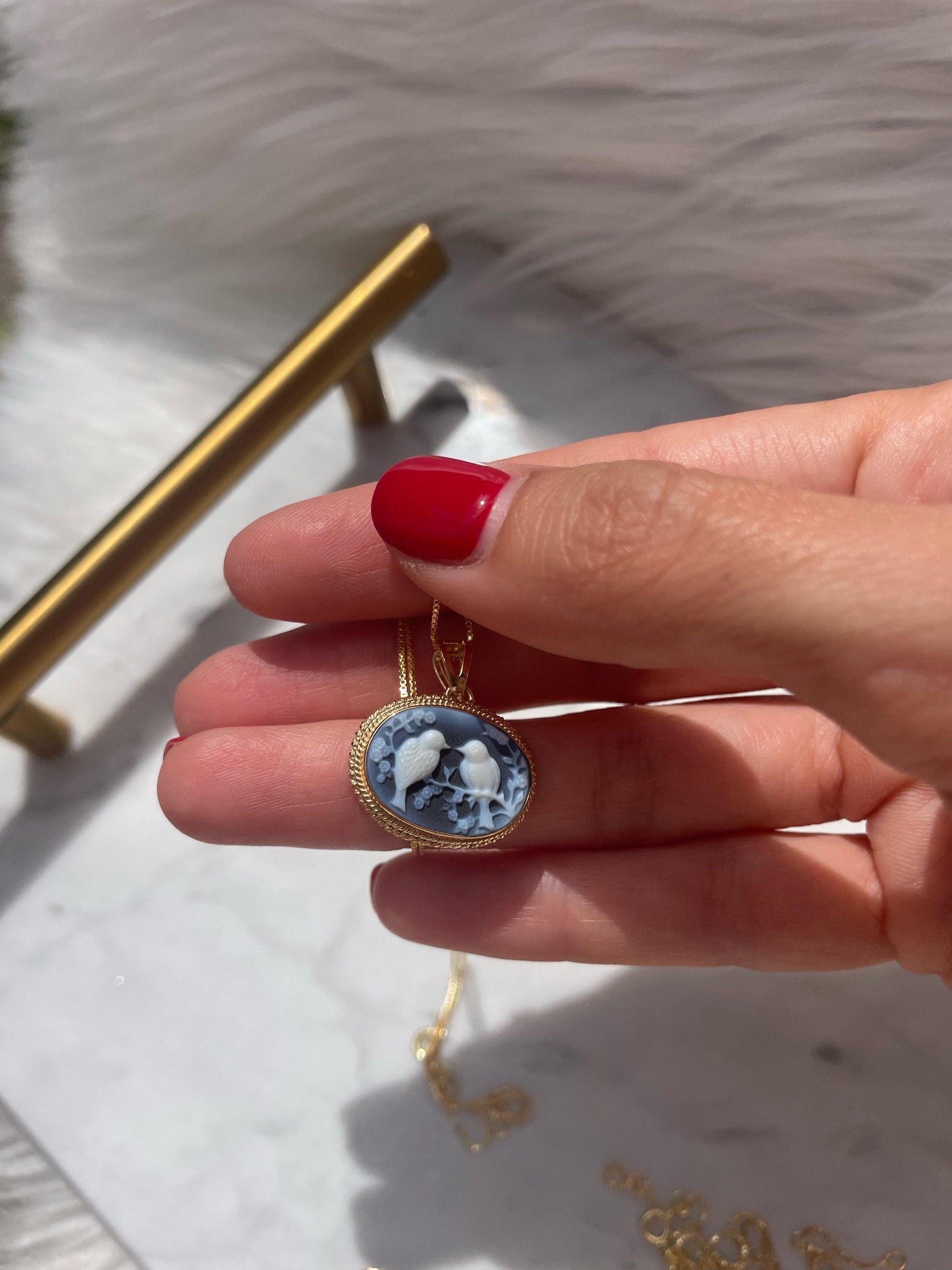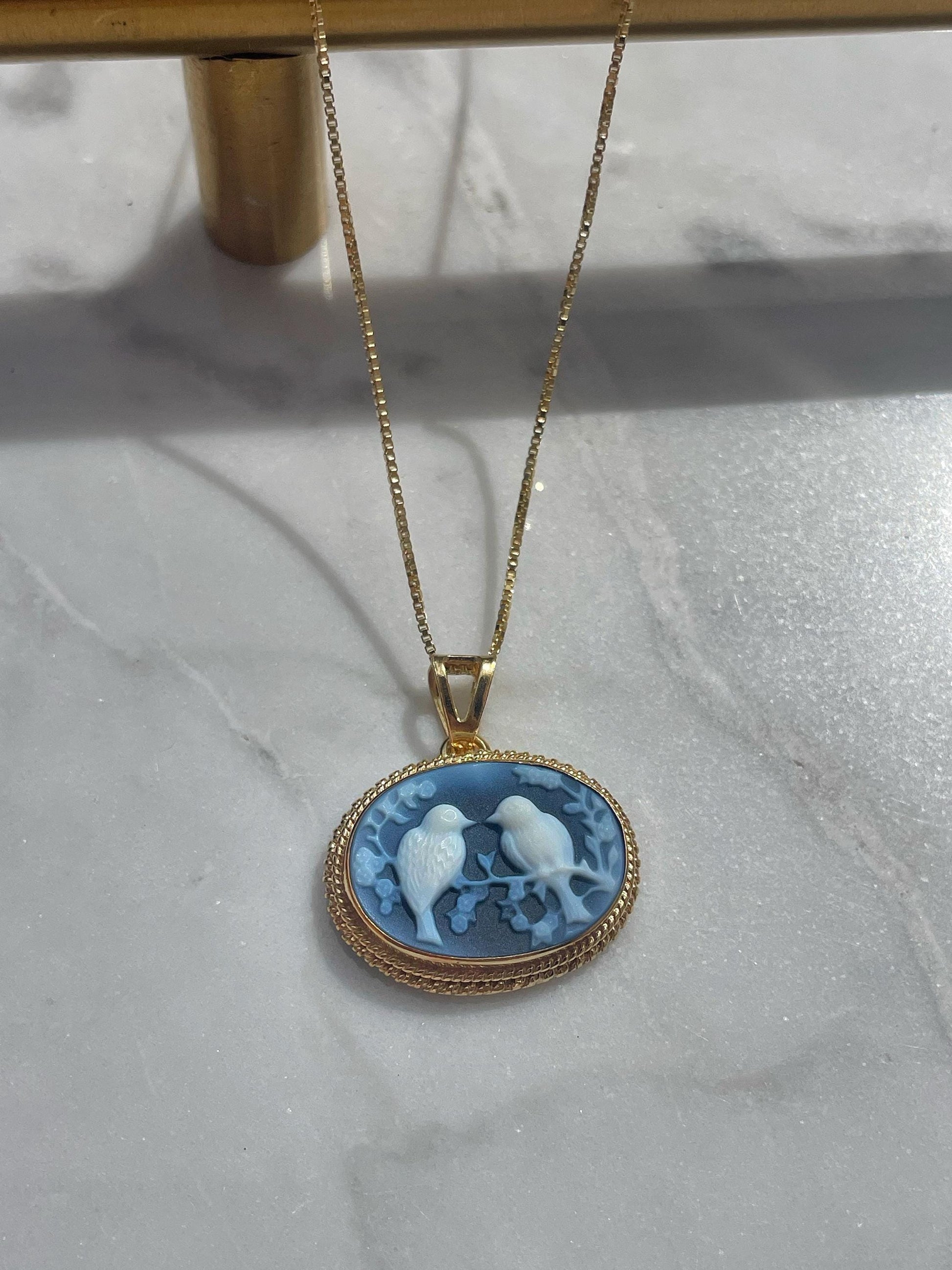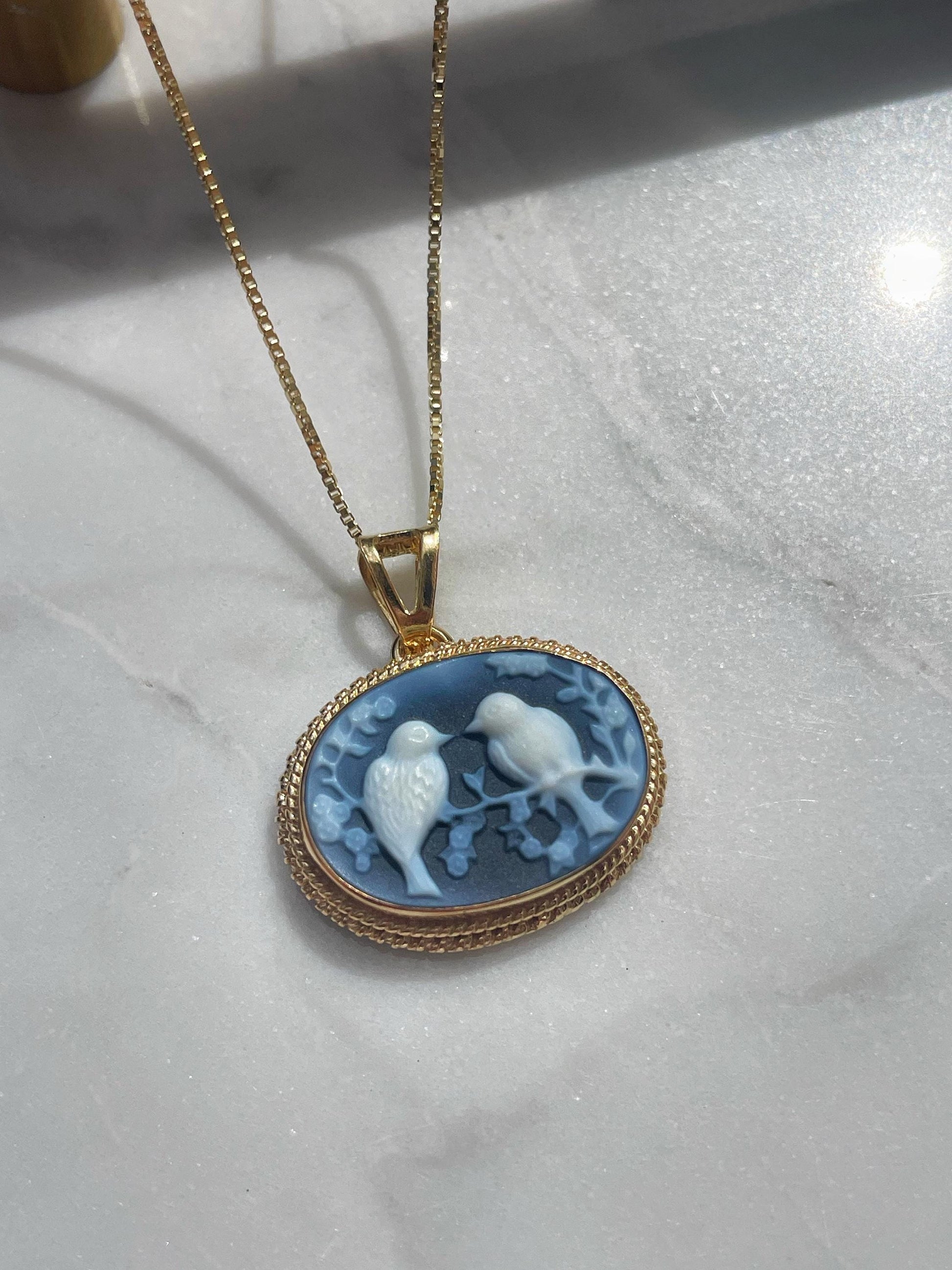 Bird cameo necklace, 18k gold, silver sterling, made in Italy, gift for her, blue bird, cameo necklace, blue cameo necklace, bird lover, mom