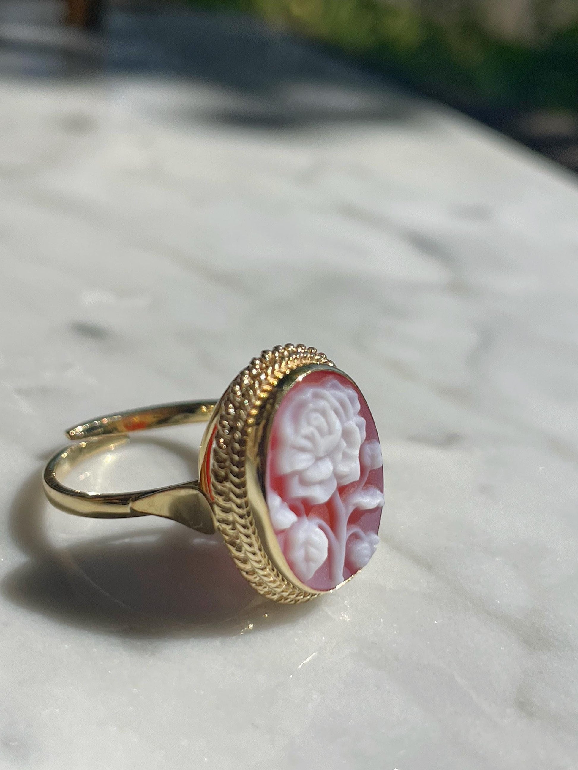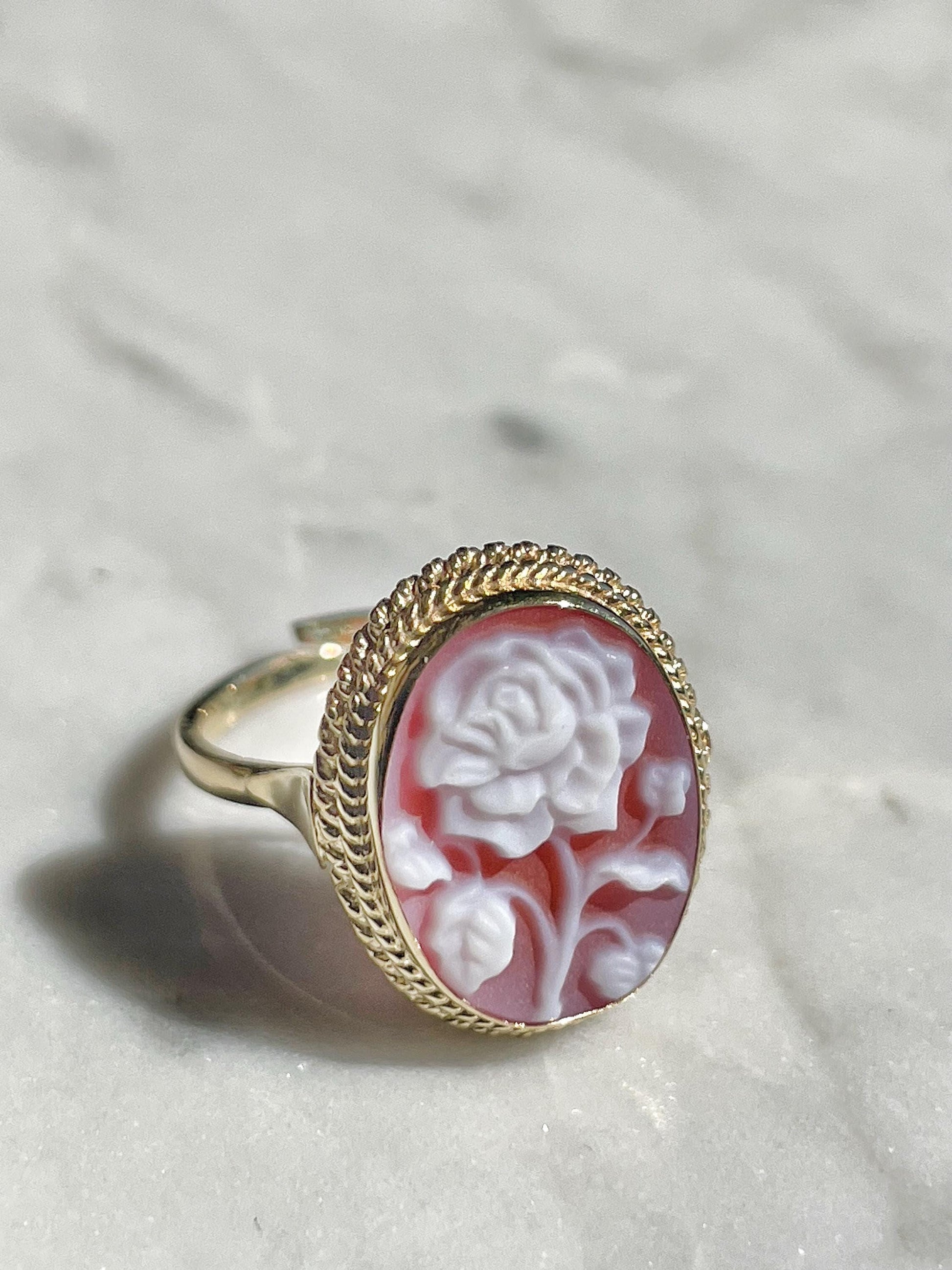 Red Rose cameo adjustable ring, 18k gold plated, gift for her