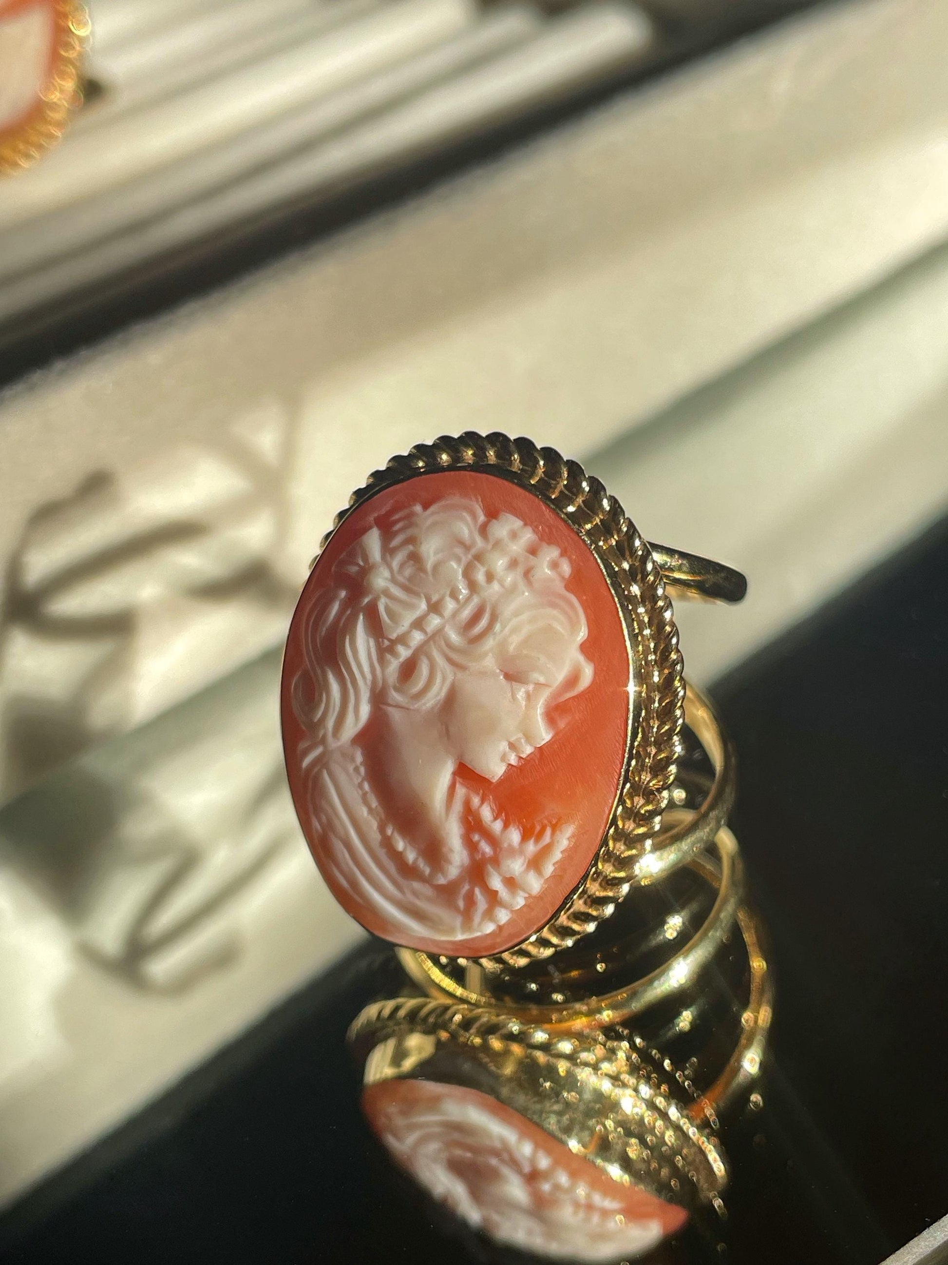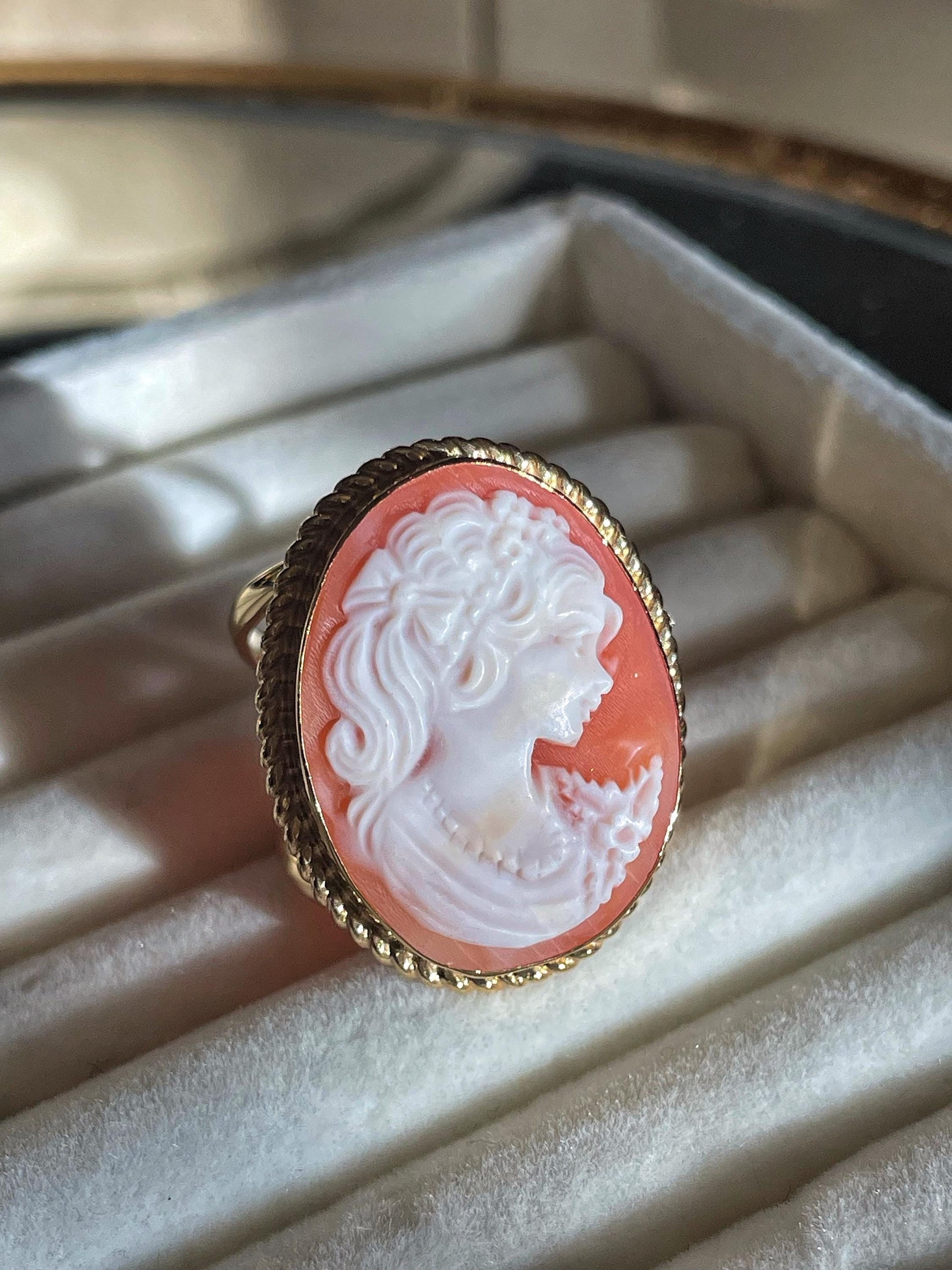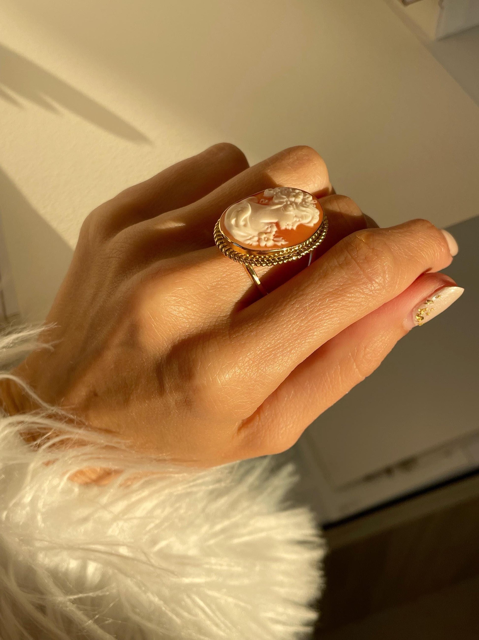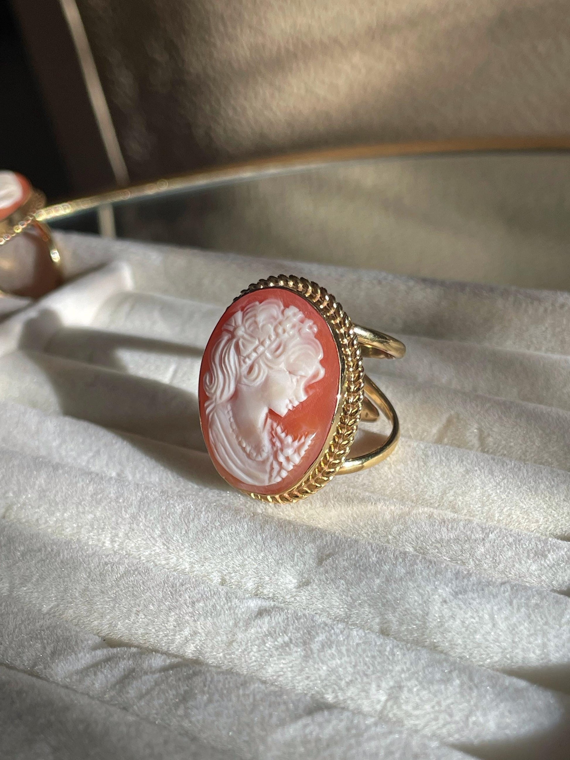 18k Gold Cameo Ring, made in Italy, adjustable ring, statement ring, sea shell cameo, camée, bow ring, unique gift for her, FREE SHIPPING