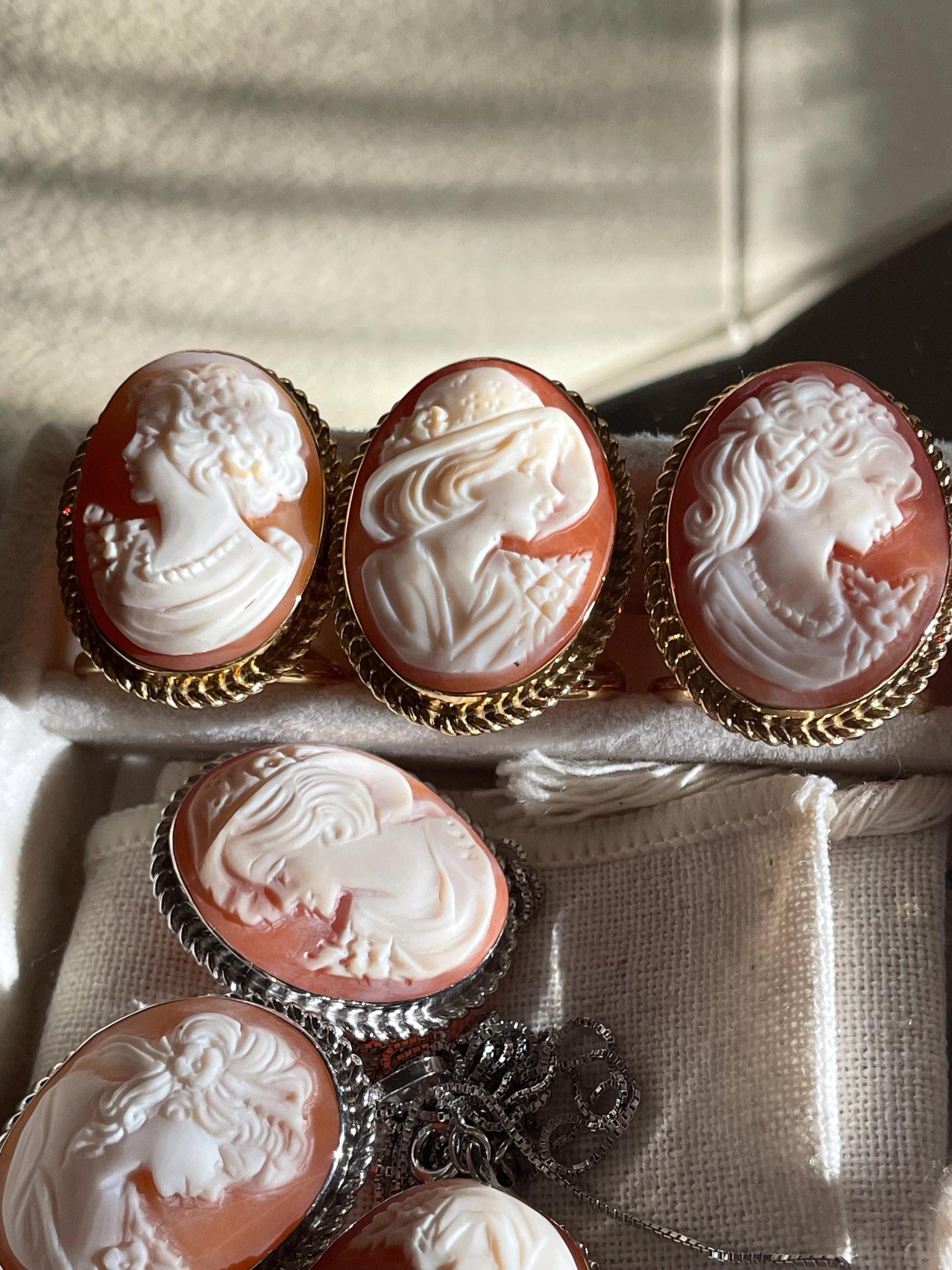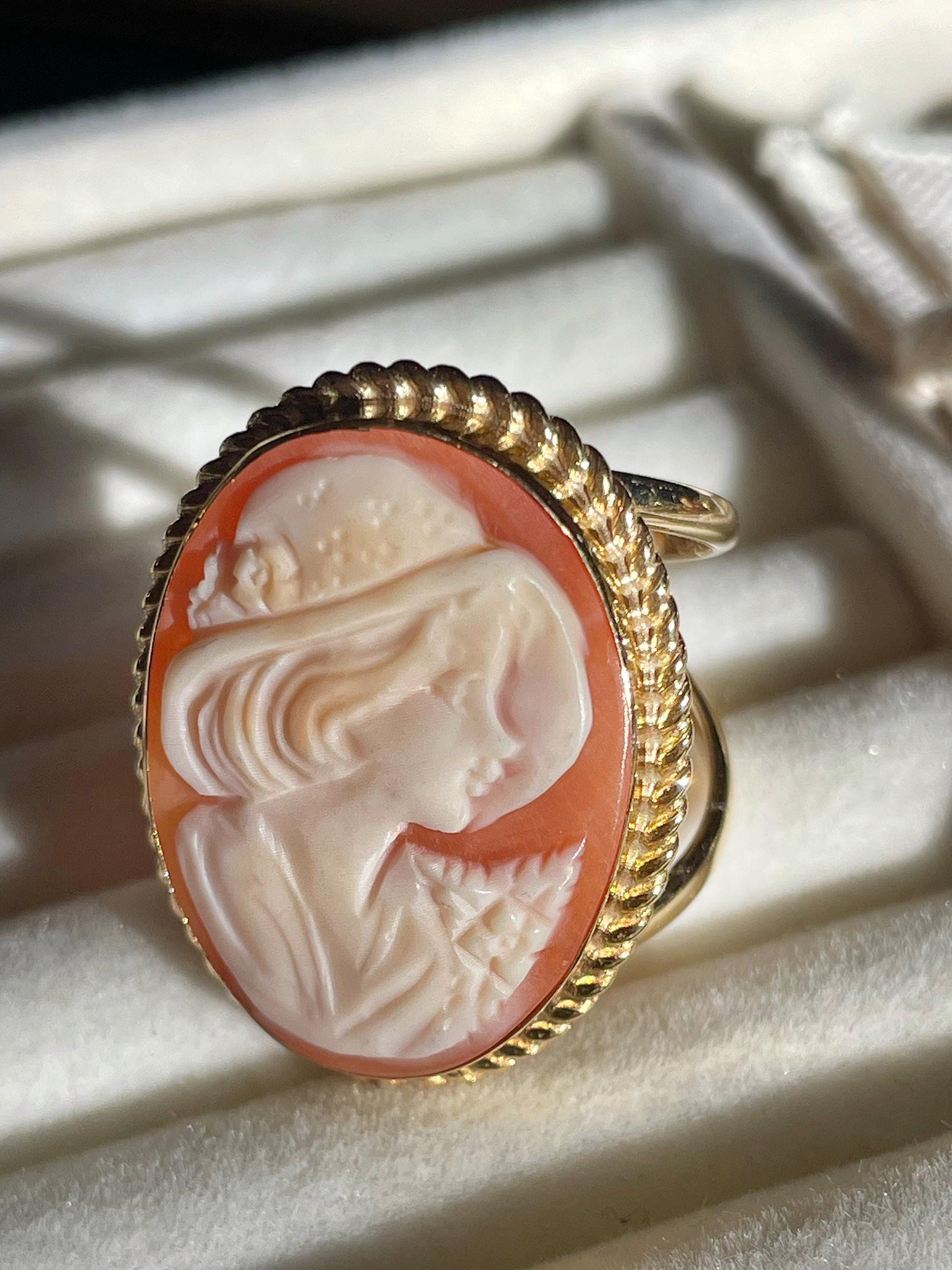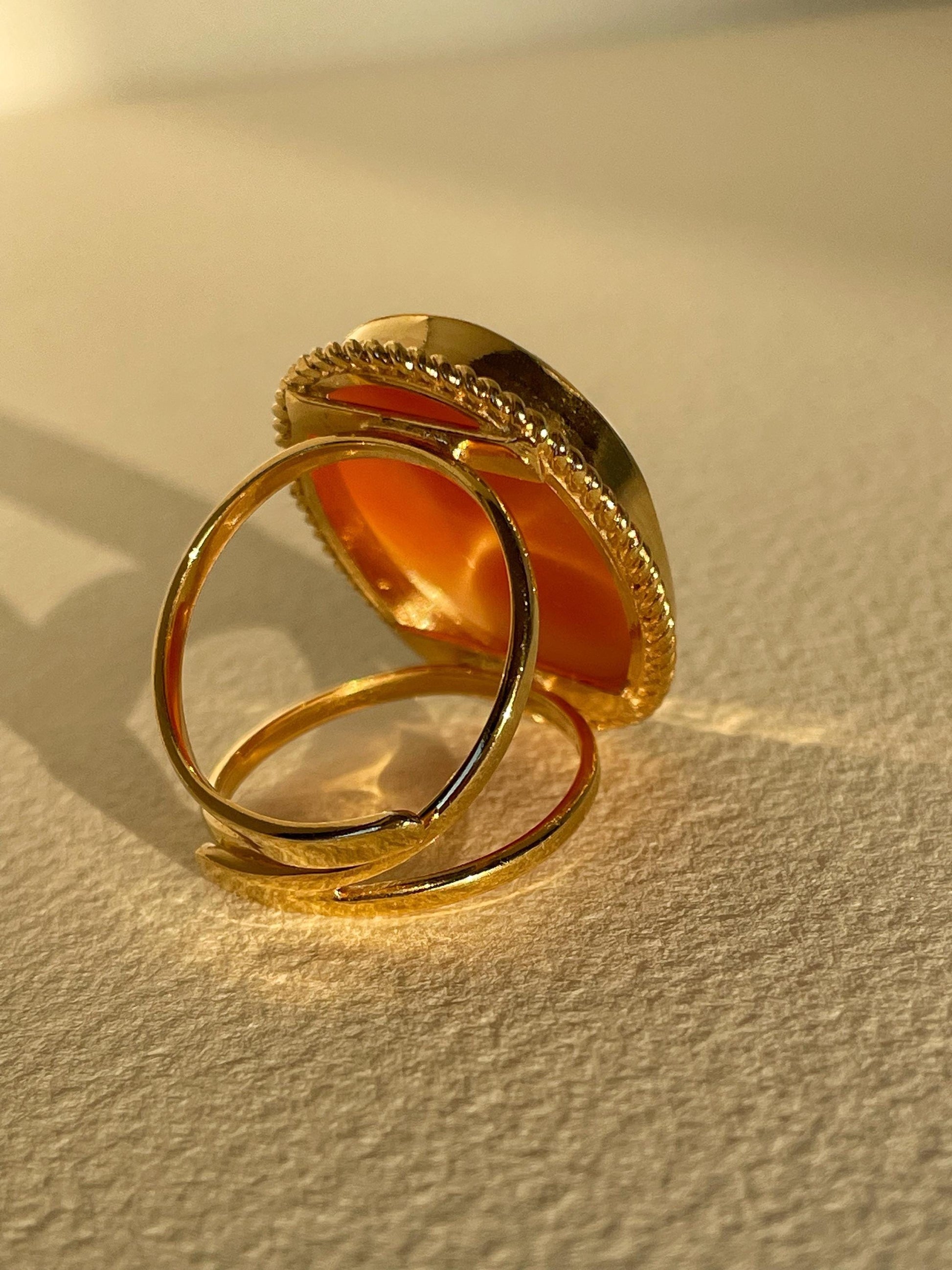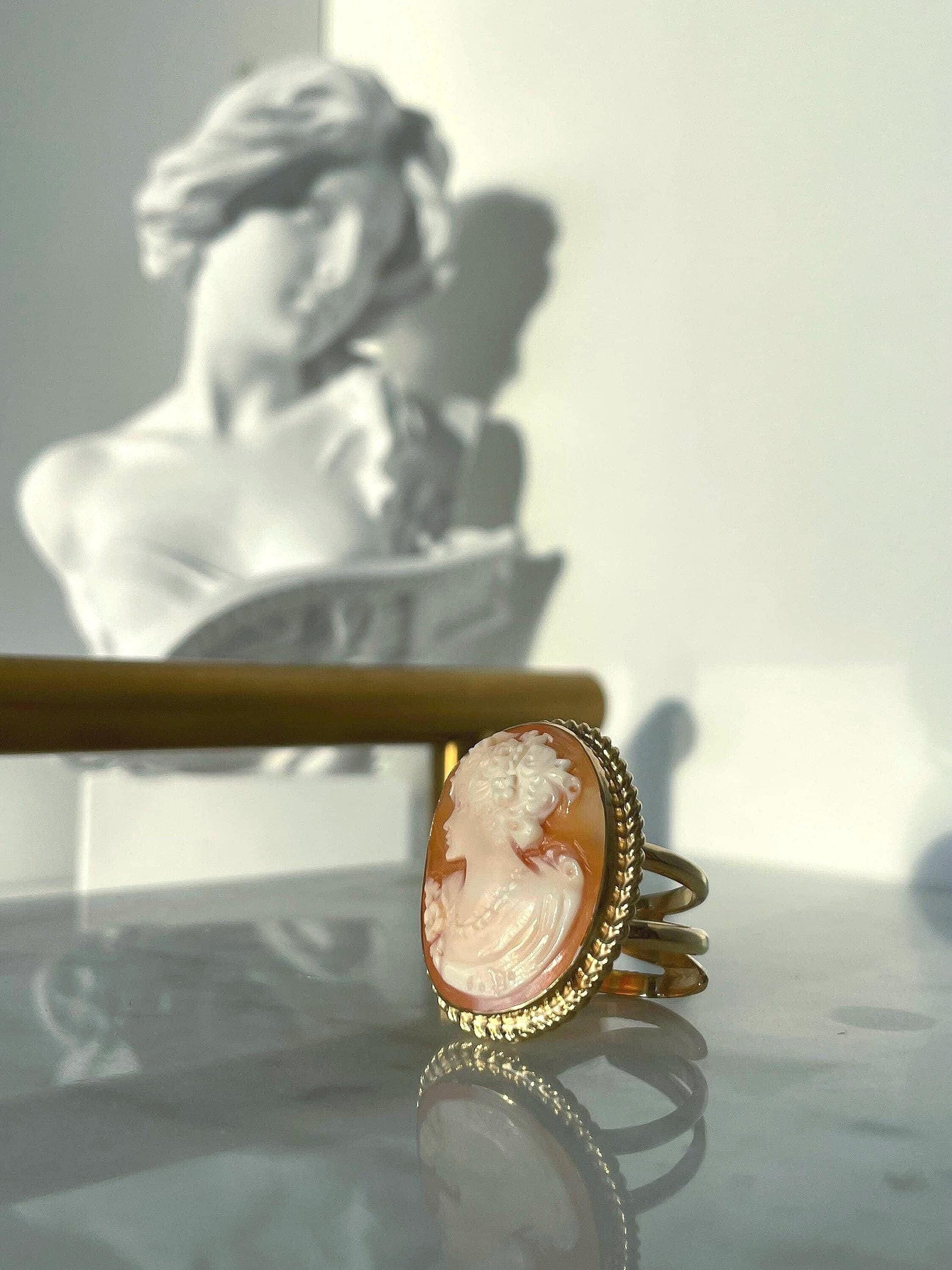 18k Gold Cameo Ring, made in Italy, adjustable ring, statement ring, sea shell cameo, camée, vintage hat, unique gift for her, FREE SHIPPING