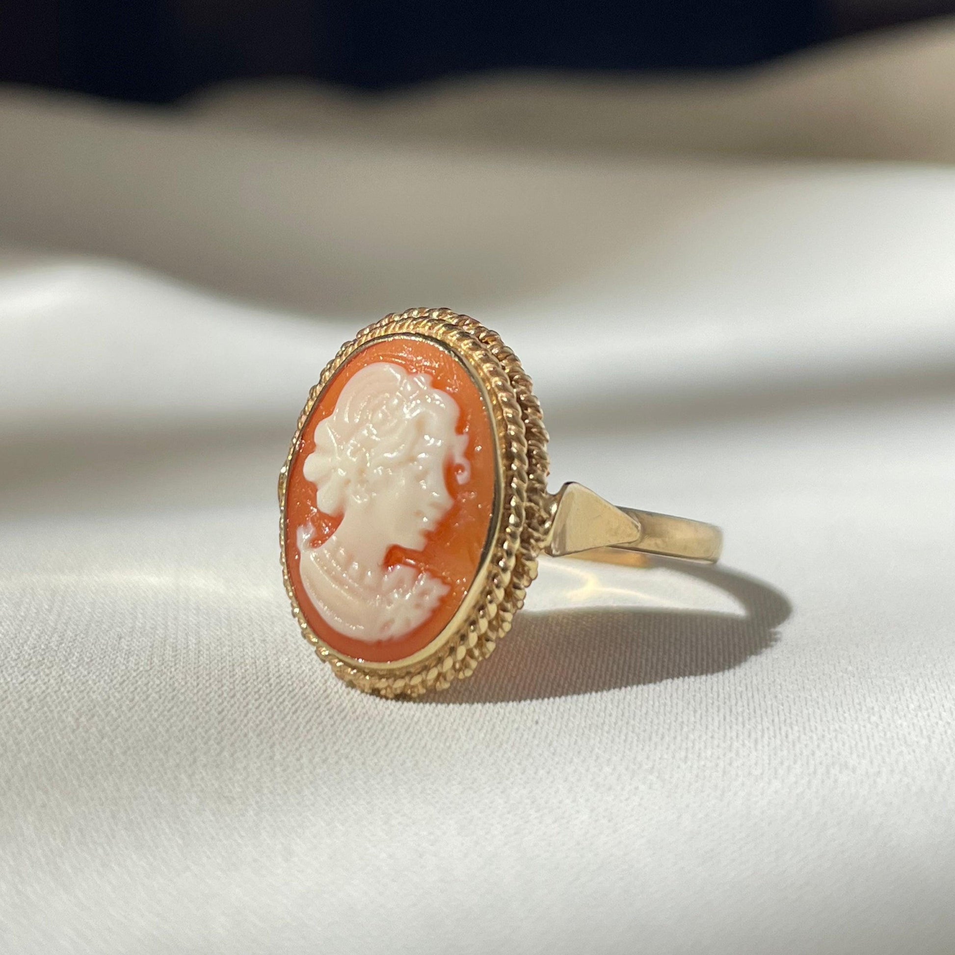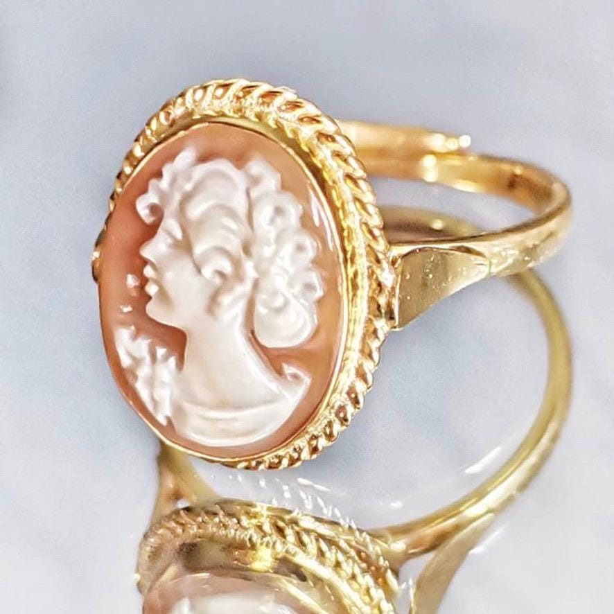 18k Gold Cameo Ring, waterproof ring, silver sterling, made in Italy, adjustable ring, mom gift, sea shell cameo, gift for her, shell cameo