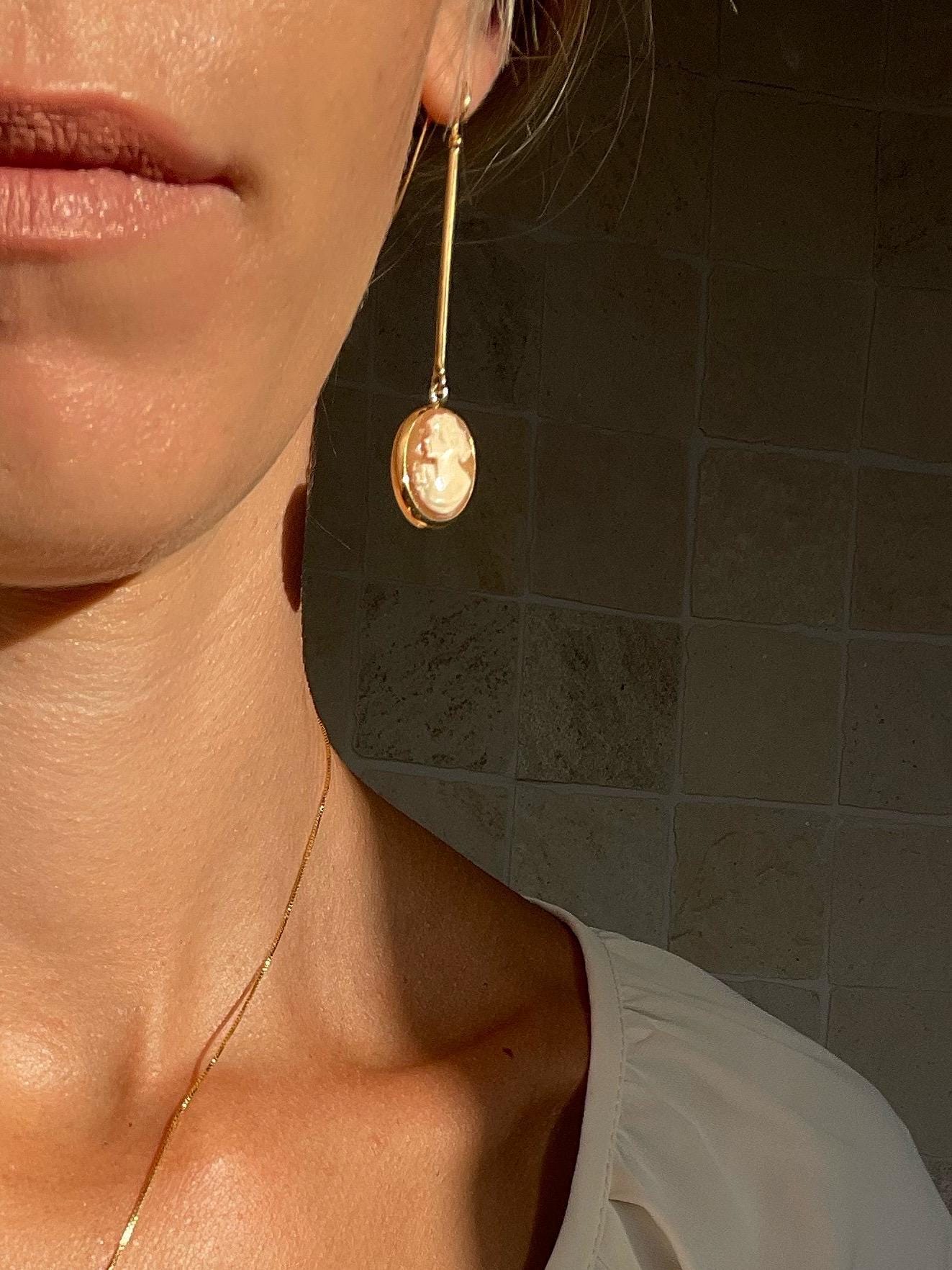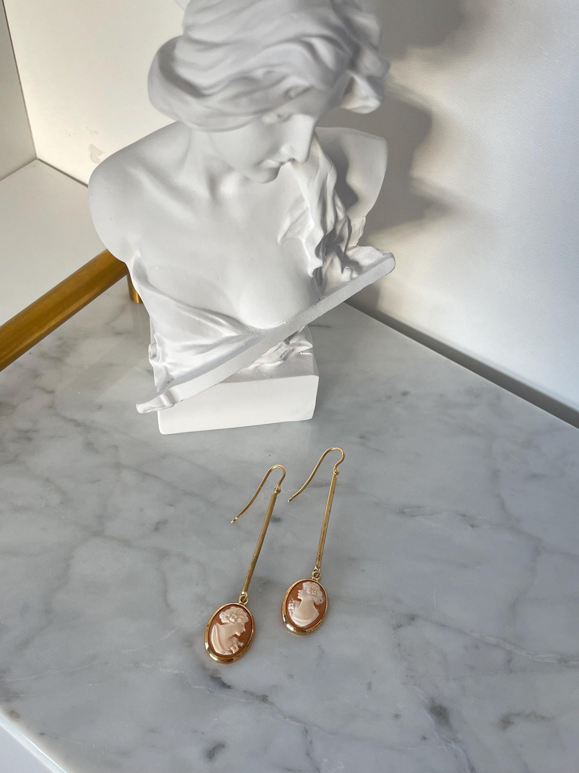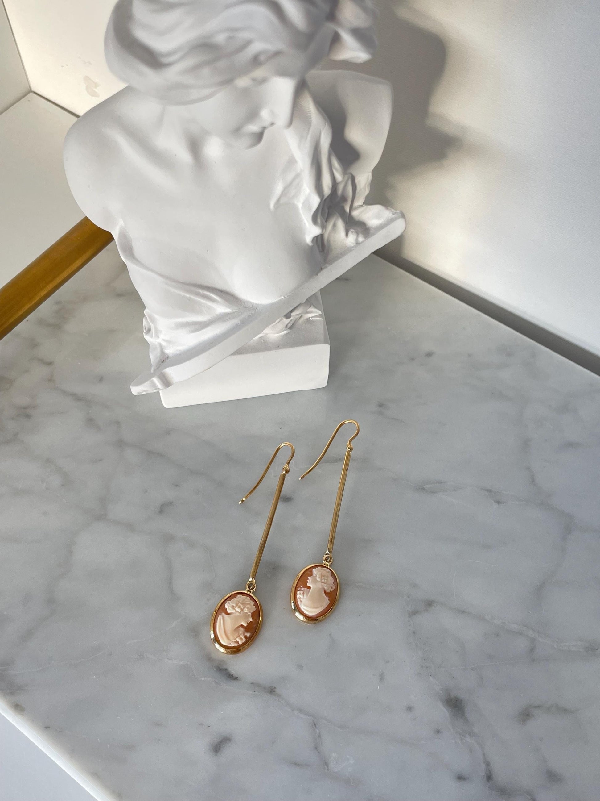 18K gold earrings, drop Cameo earrings, wedding and anniversary gift, bridal jewelry, made in Italy, custom unique gift, camée, summer jewel