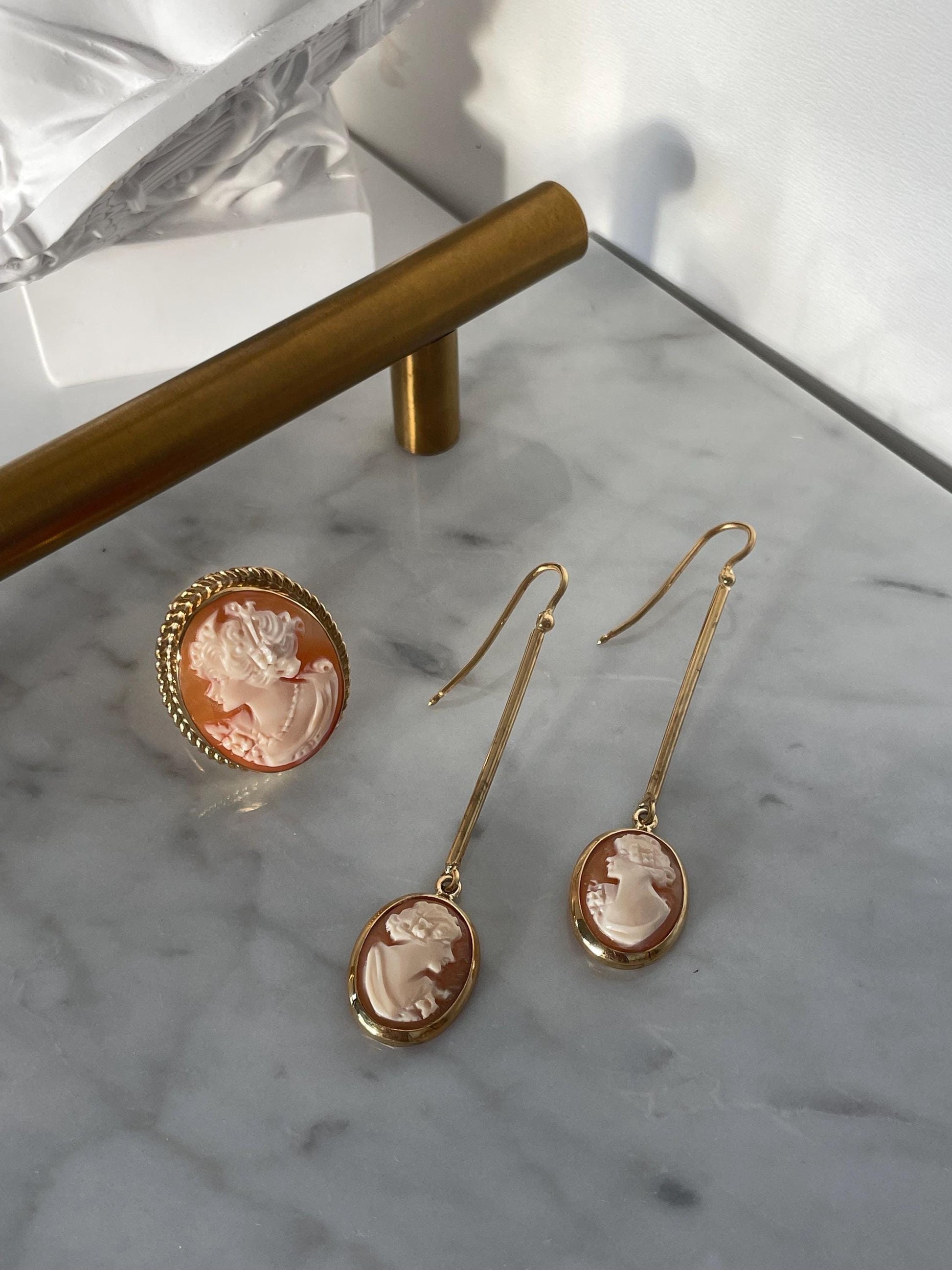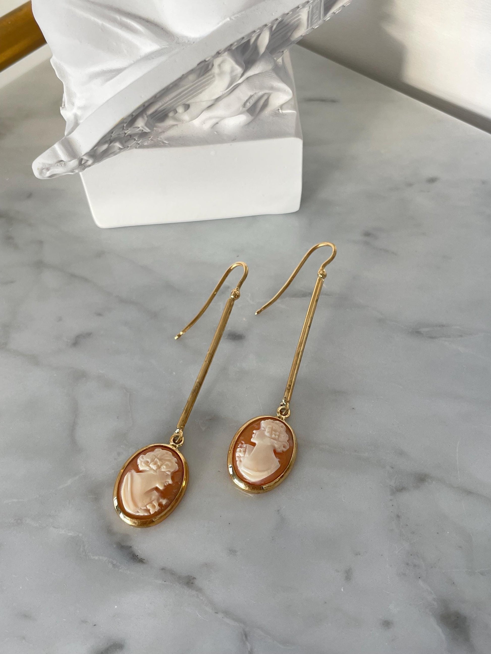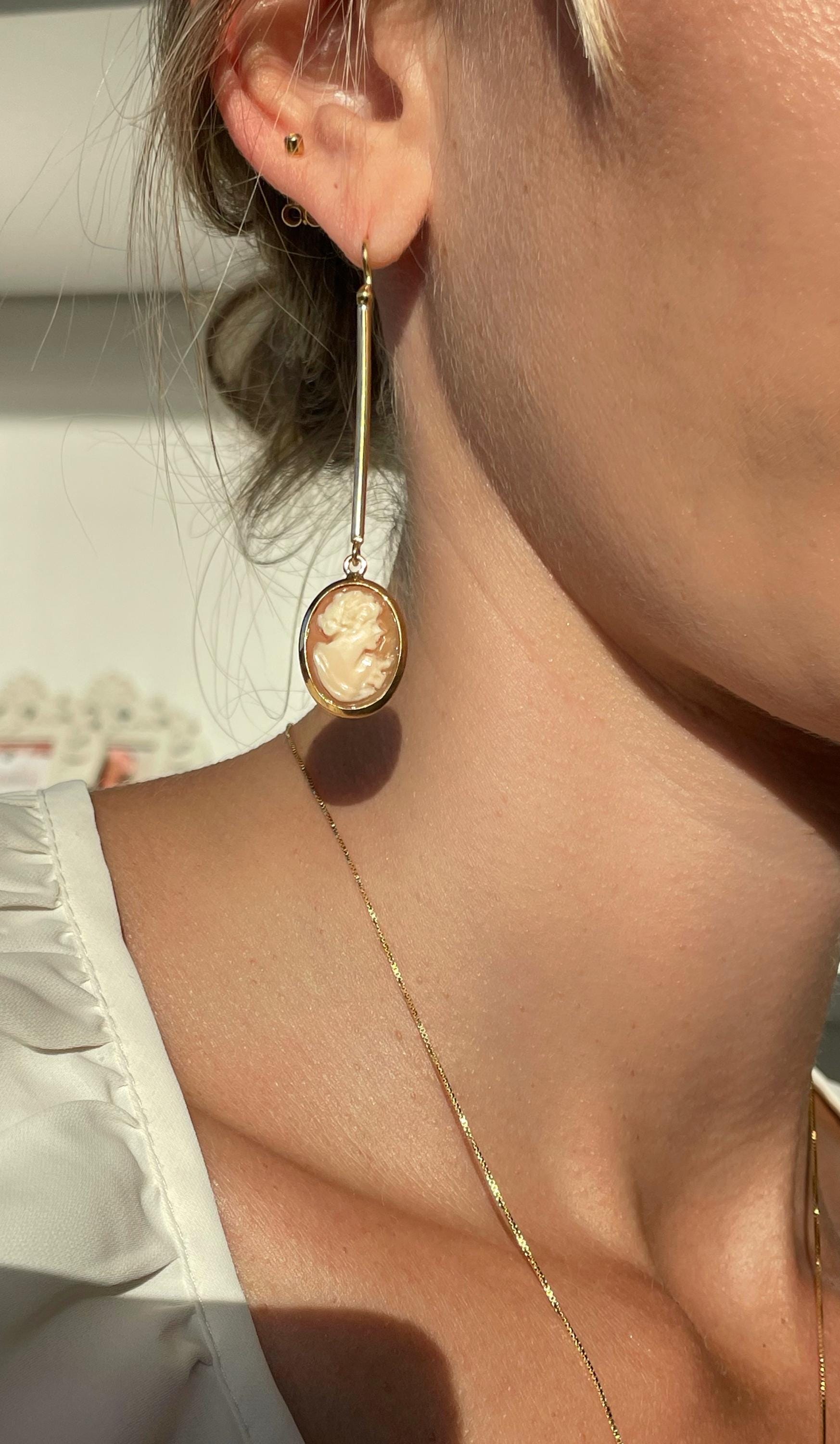18K gold earrings, drop Cameo earrings, wedding and anniversary gift, bridal jewelry, made in Italy, custom unique gift, camée, summer jewel