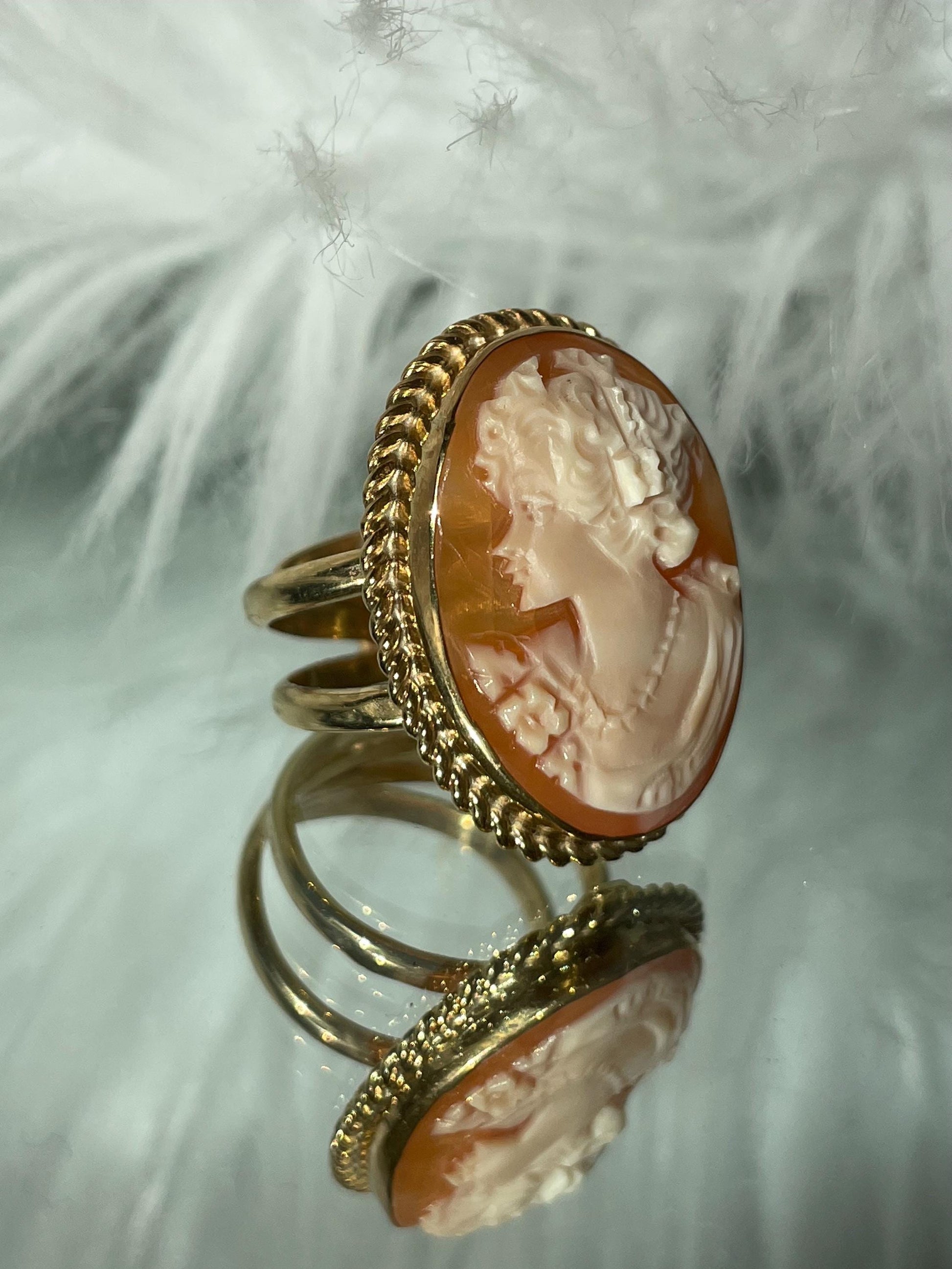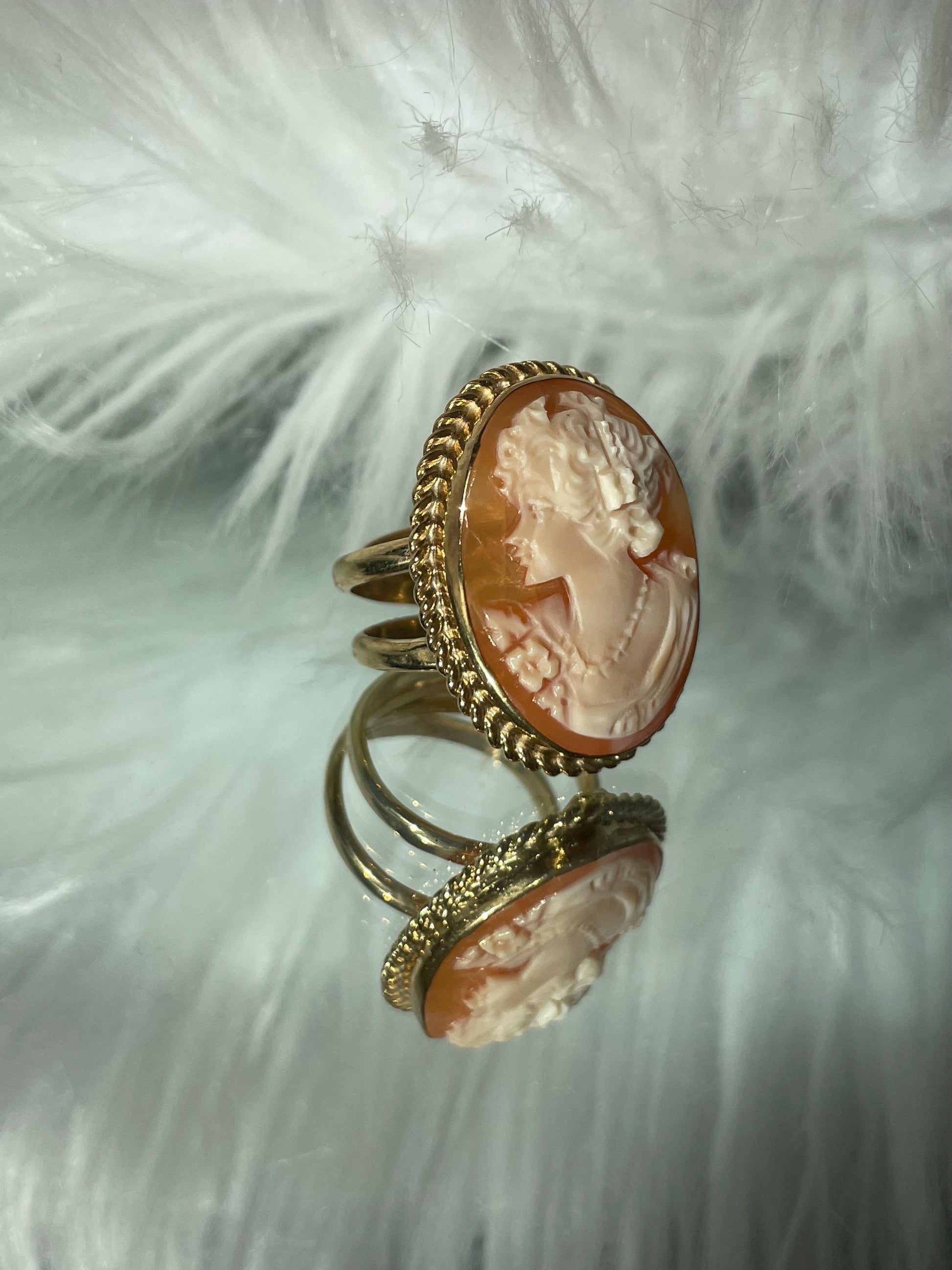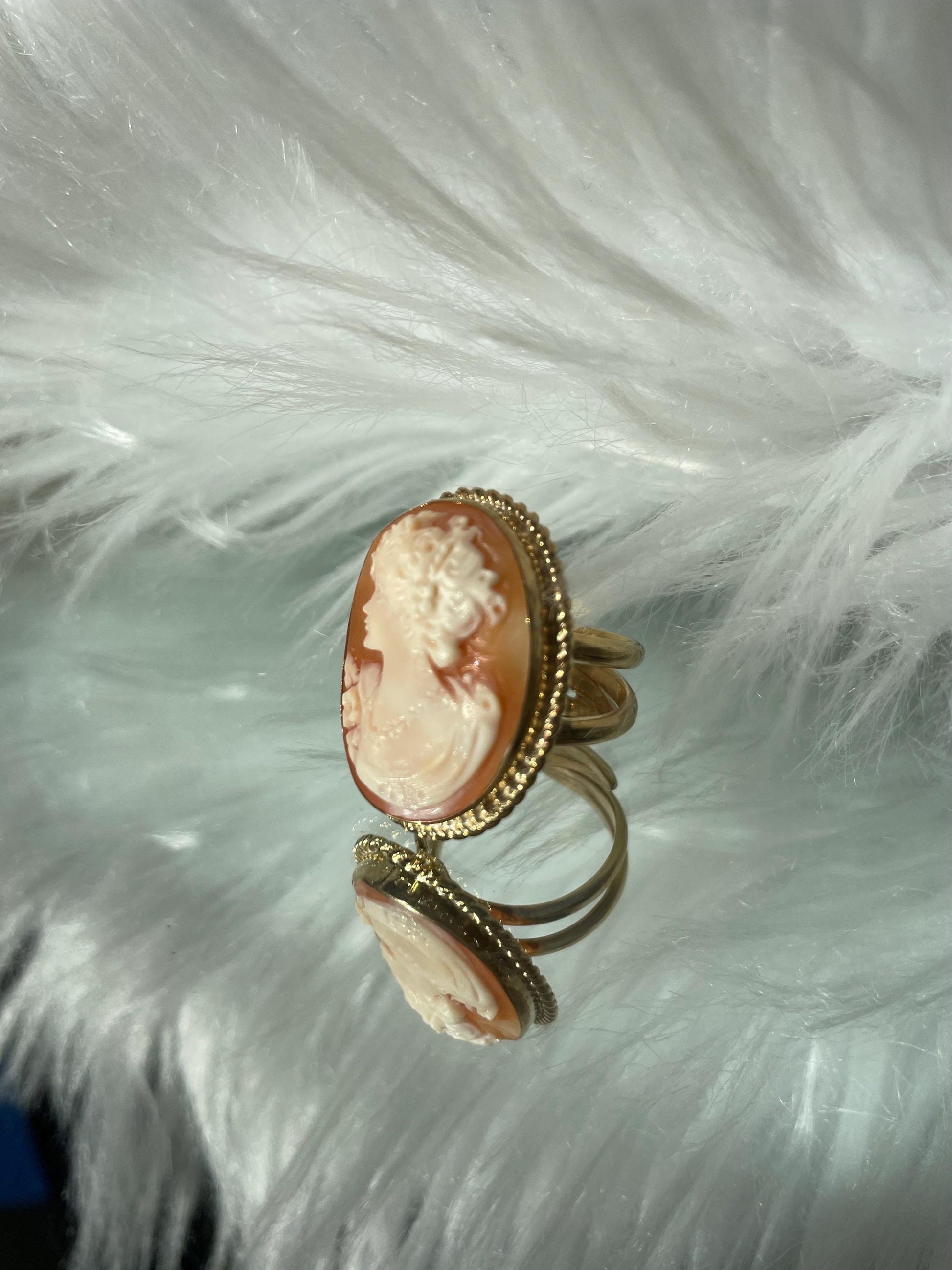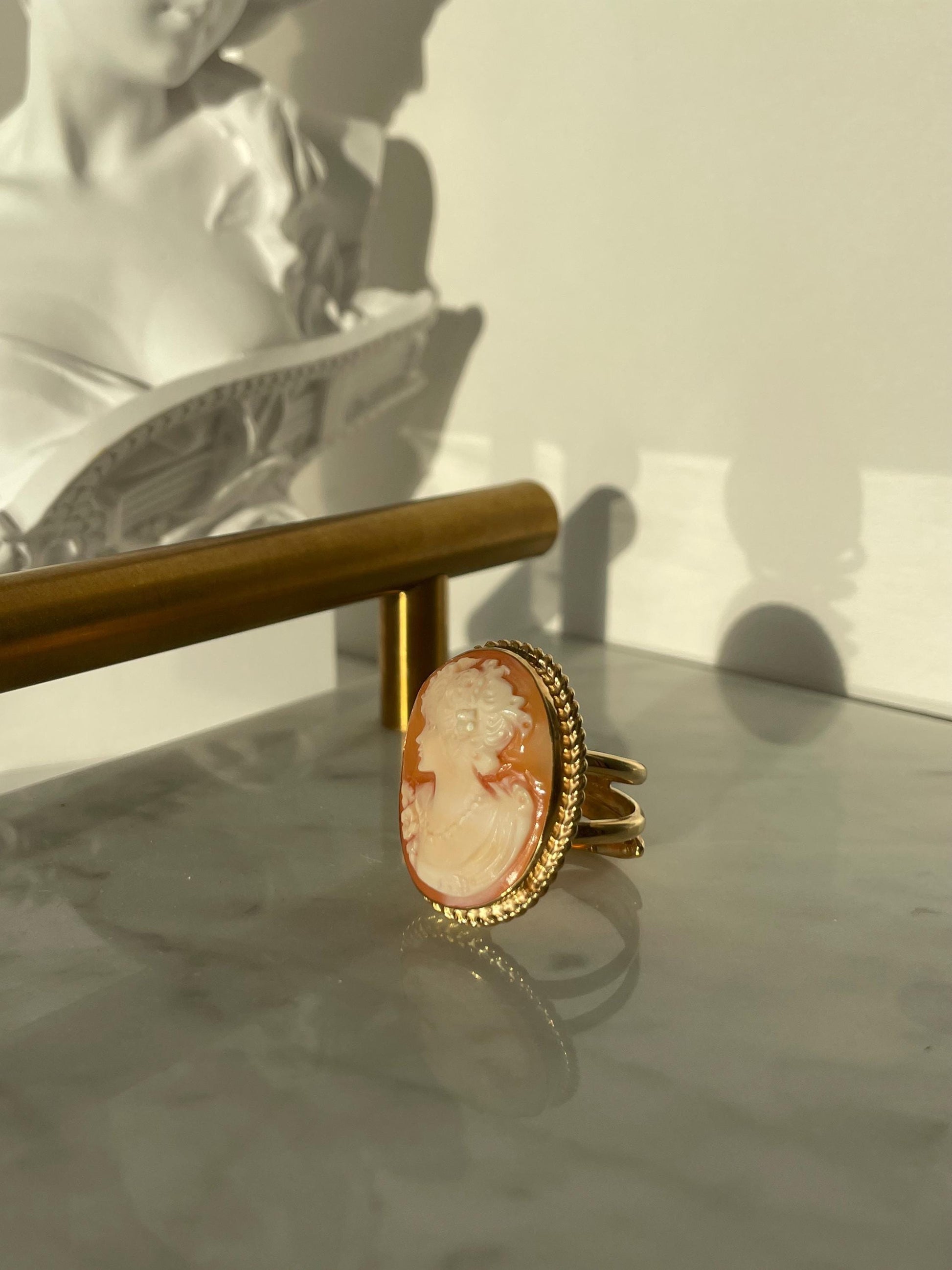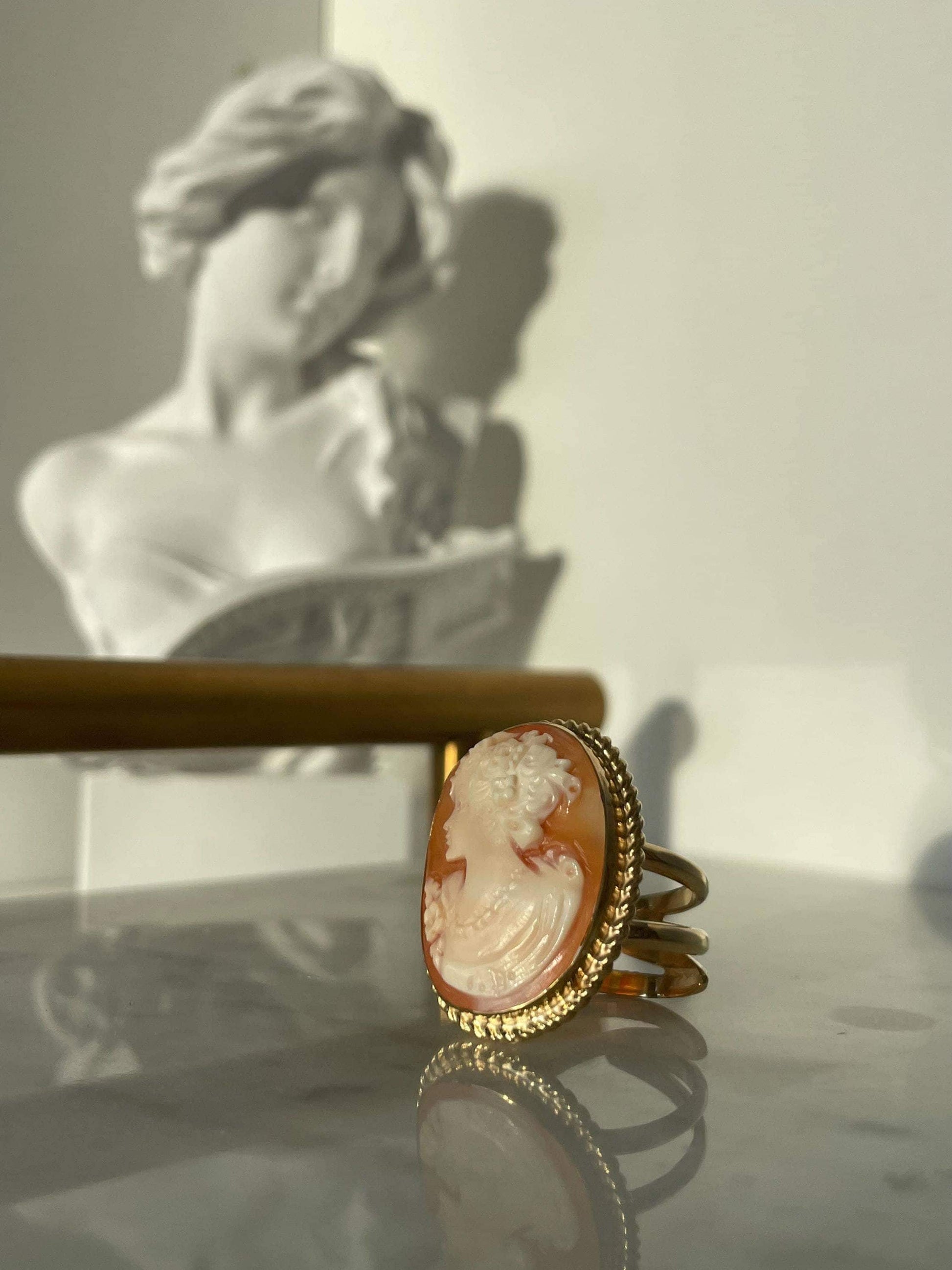 18k Gold plated Cameo Ring, waterproof ring, made in Italy, adjustable ring, statement ring, sea shell cameo, camée, unique gift for her