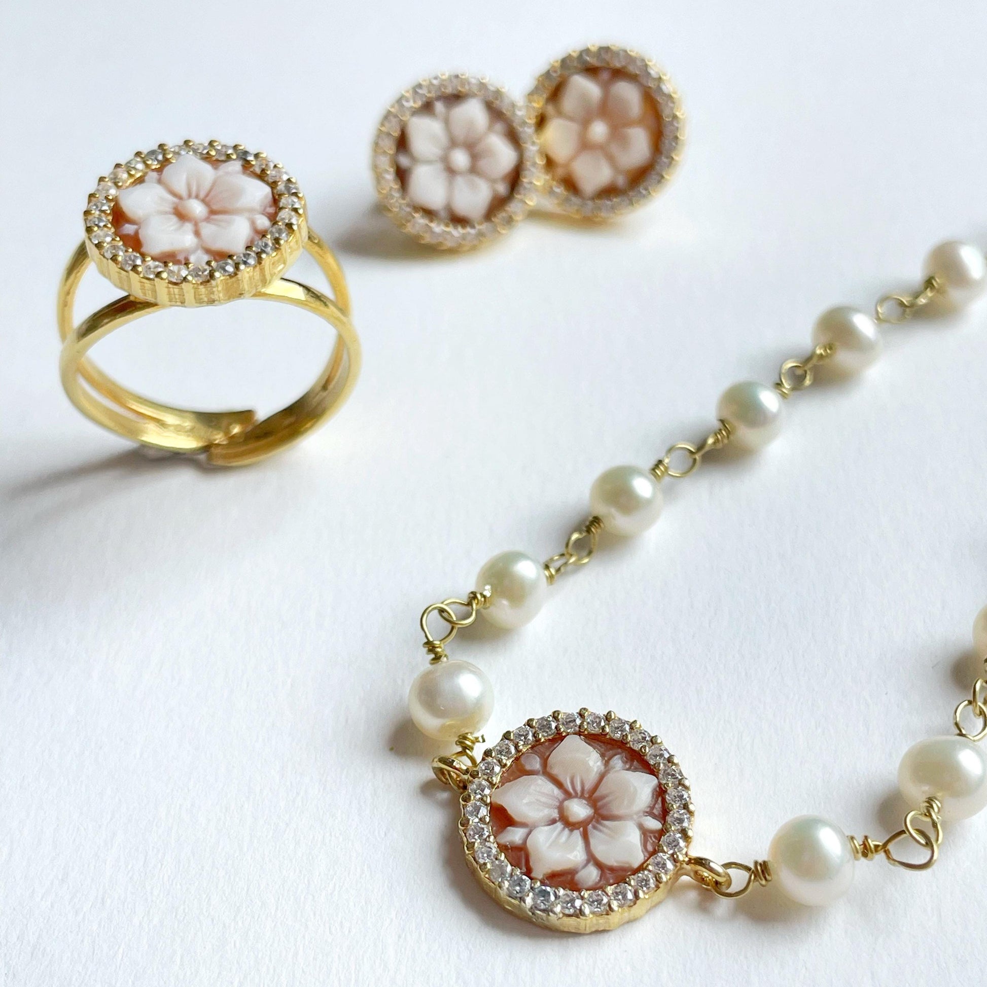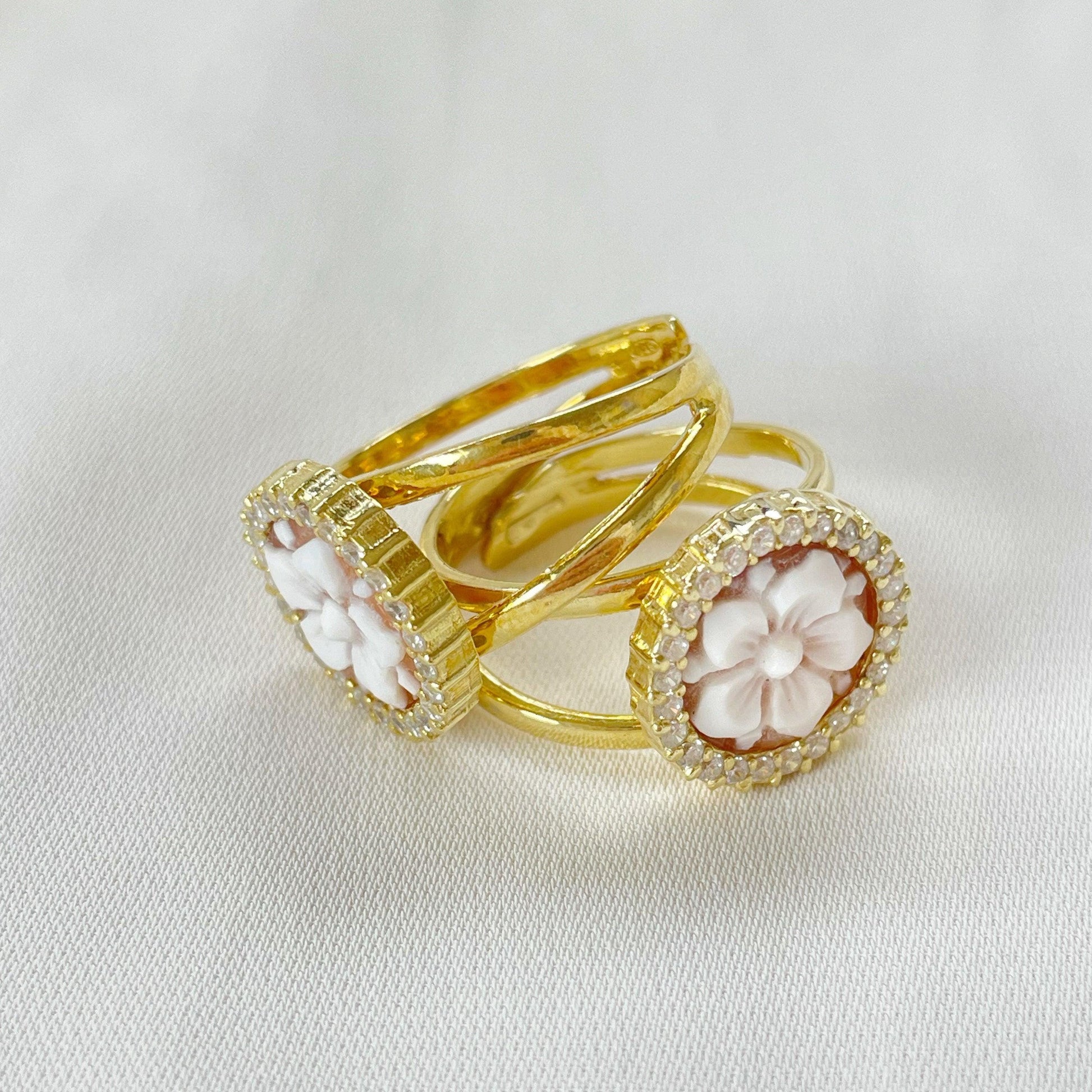 18K gold ring, Handmade cameo ring, Italian, anniversary gift, adjustable ring, minimalistic ring, birth flower jewelry, waterproof ring