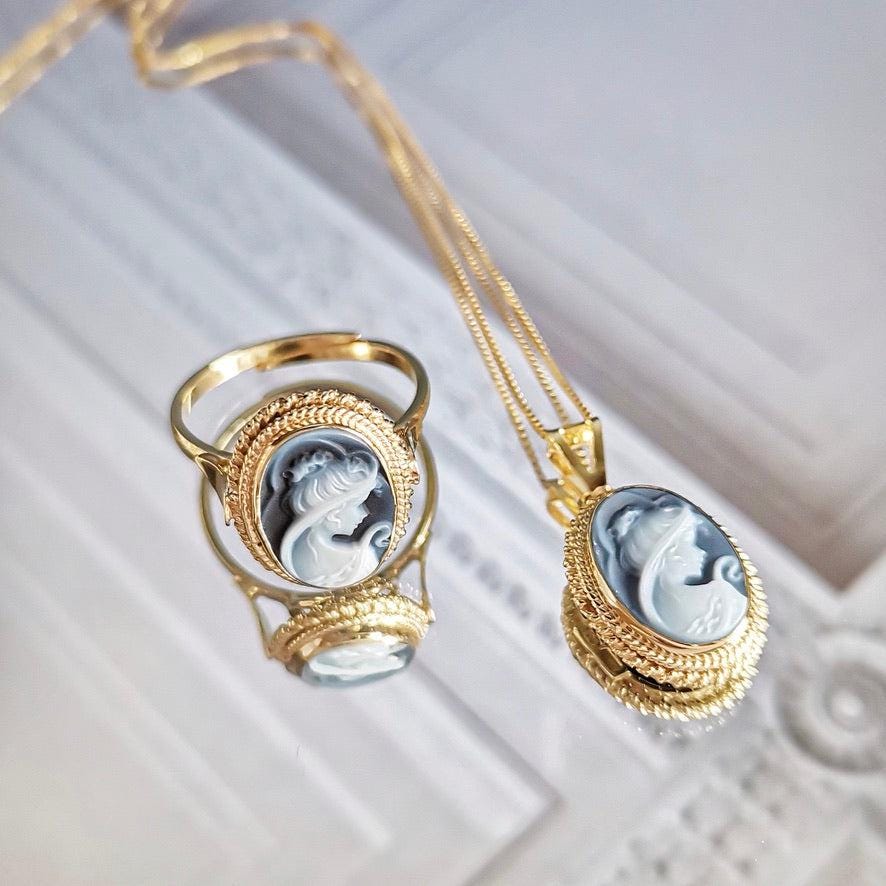 Blue cameo adjustable ring, 18K gold silver sterling, gift for her, made in Italy, waterproof ring, victorian style, gold cameo ring, mother