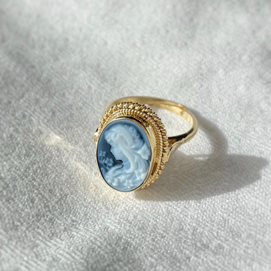 Blue cameo adjustable ring, golden silver sterling 925, gift for her, made in Italy, Mother of the bride, victorian style, gold cameo ring