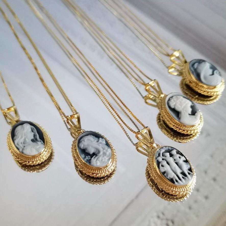 Blue Cameo necklace, 18k gold plated necklace, cameo jewelry, bridal jewelry set, made in Italy, gift for her, unique wedding gift, Mother's