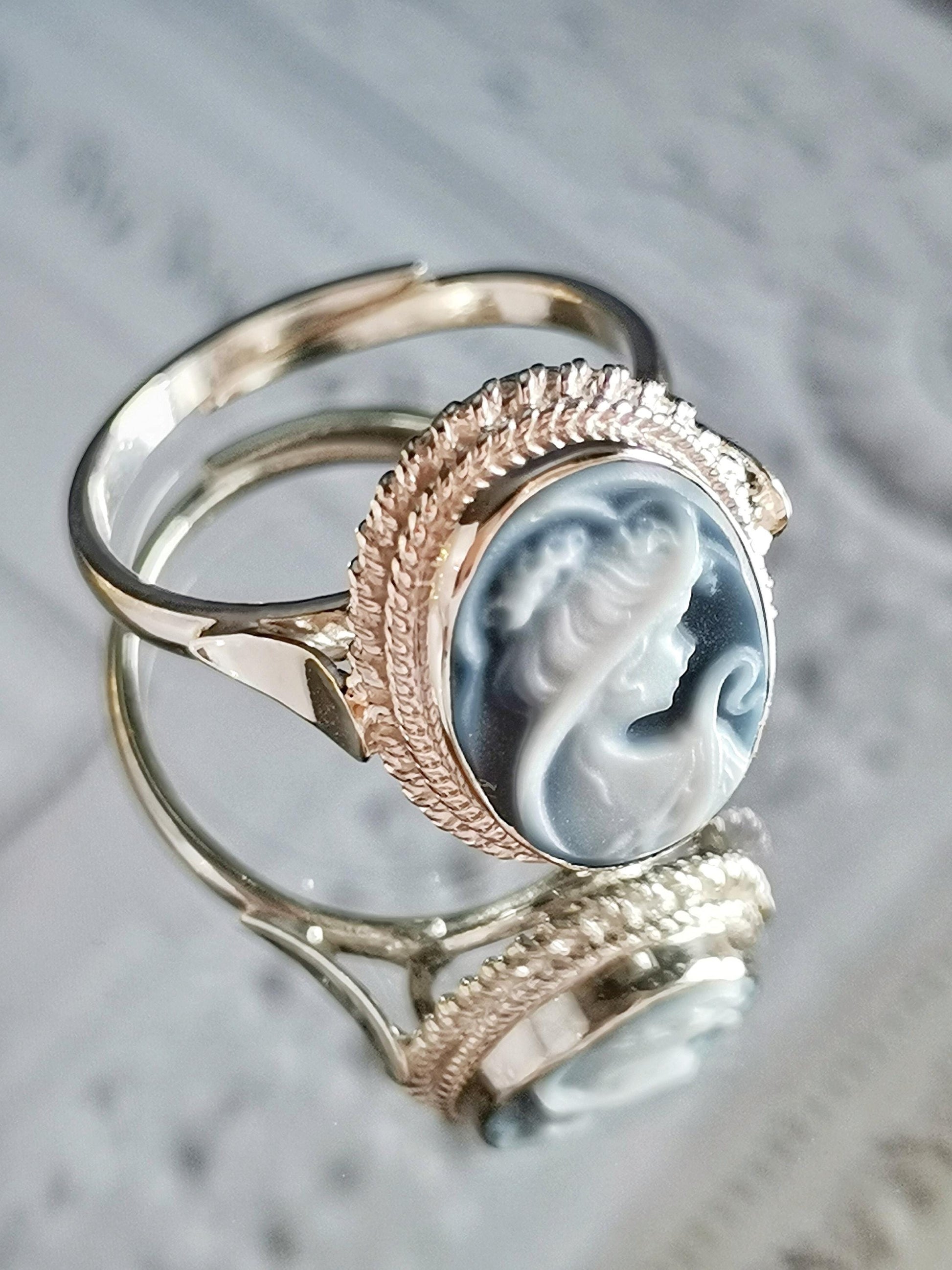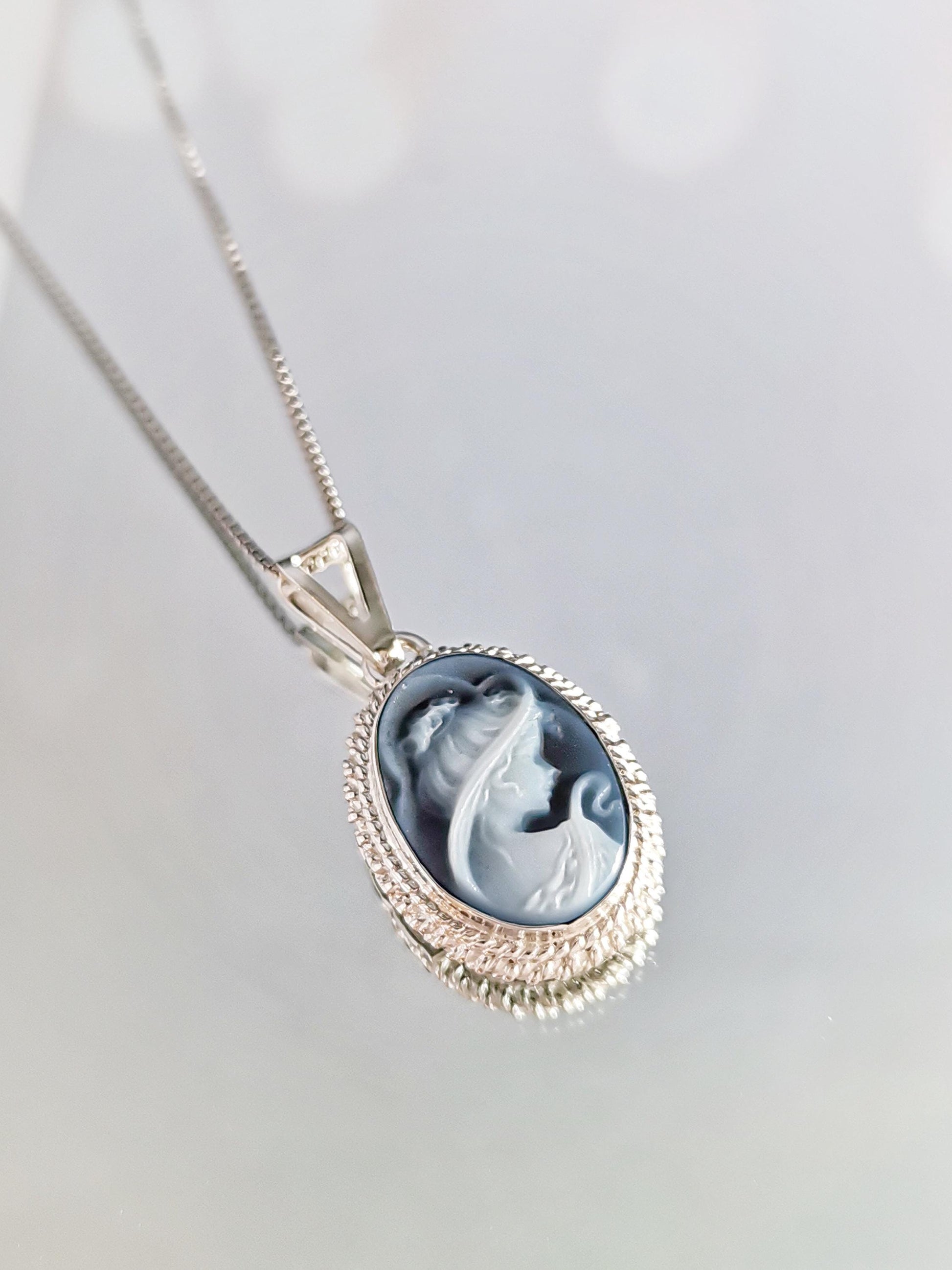 Blue cameo necklace, silver jewelry set, made in Italy, personalised gift for her, agate genuine Italian cameo, cameo set, cameo necklace