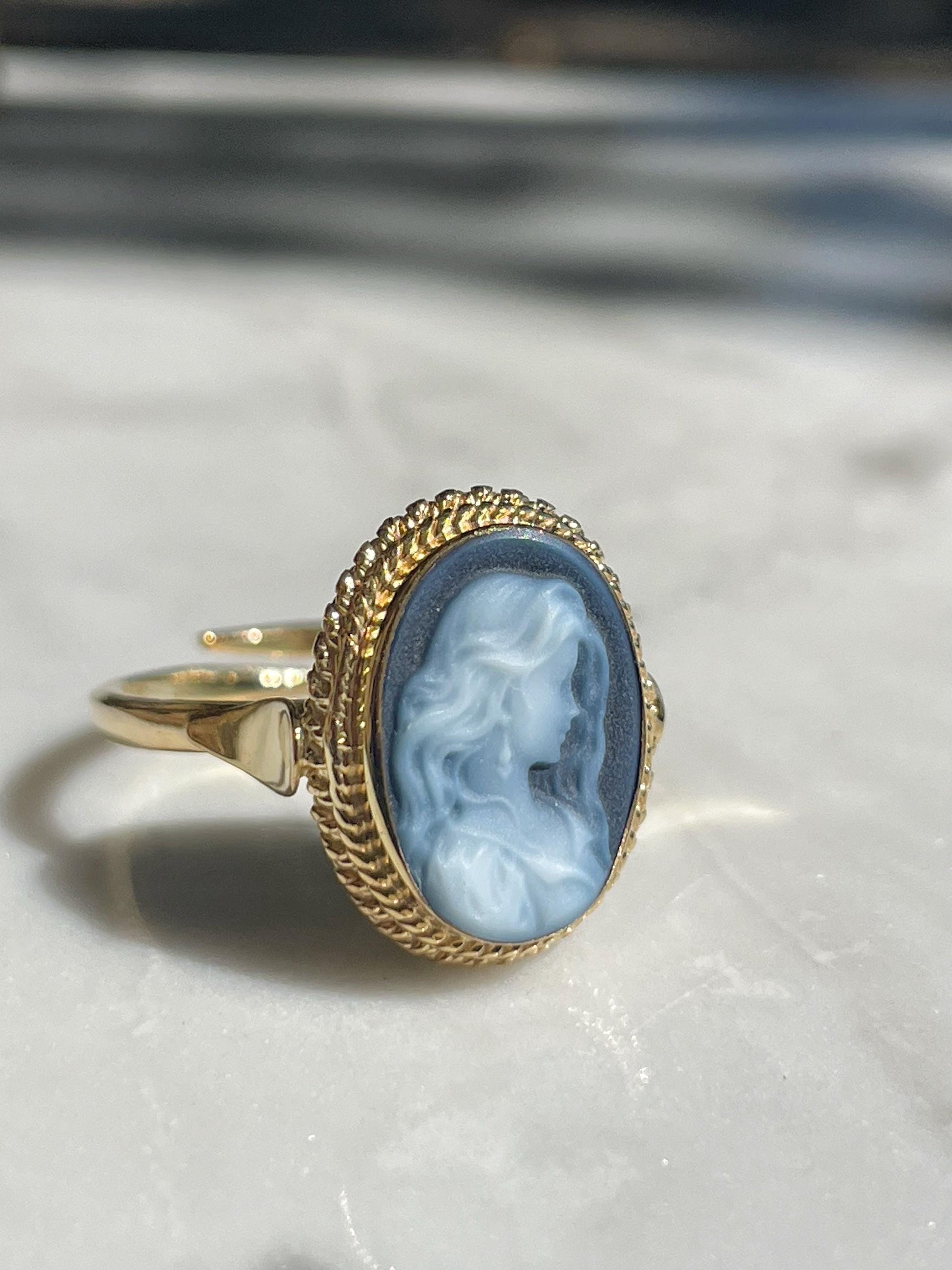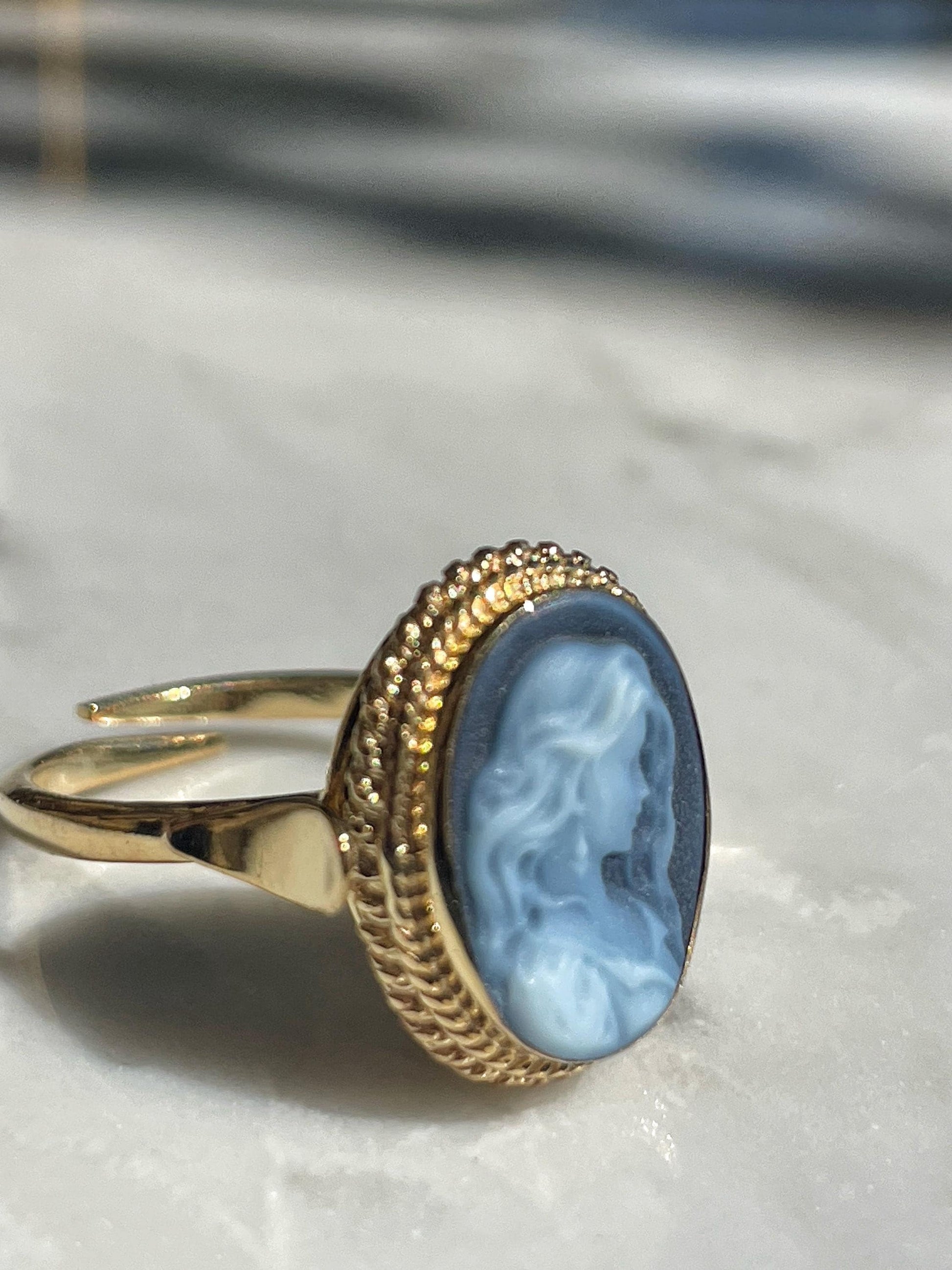 Blue cameo ring, 18k gold plated, silver sterling 925 ring, gift for her, made in Italy, gift for mother, gold cameo ring, wedding fall,