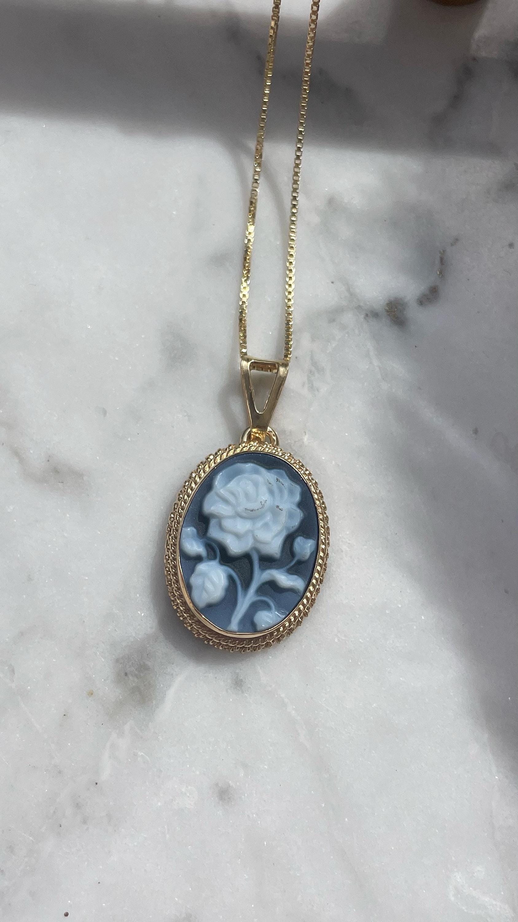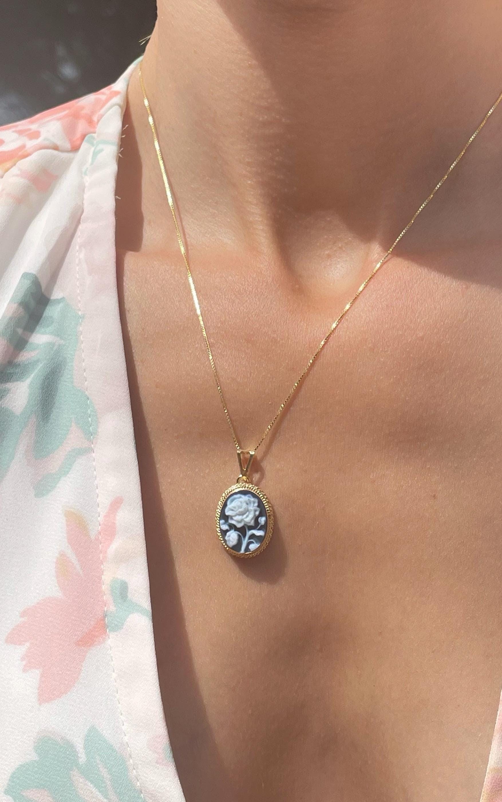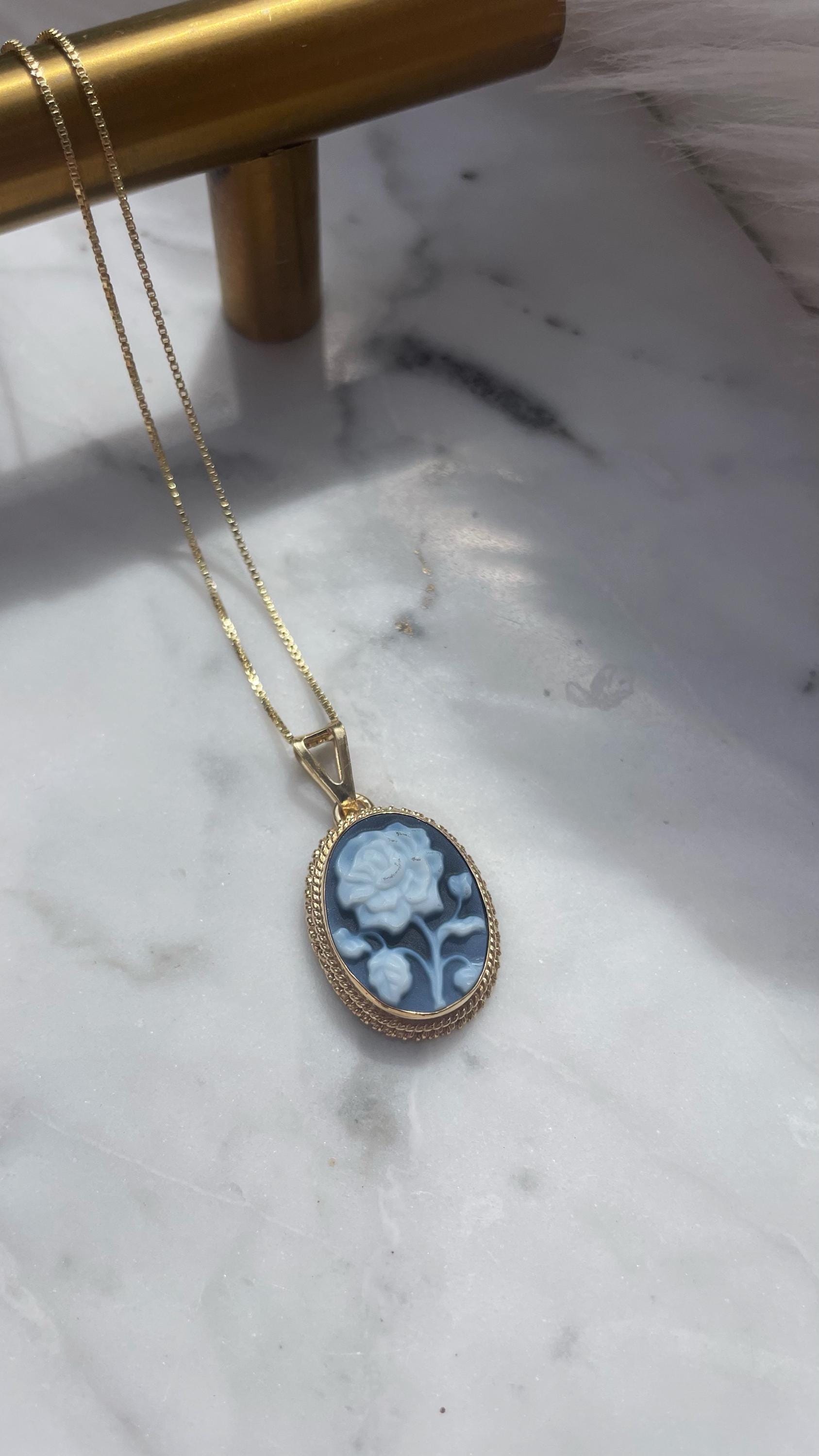 Blue cameo rose necklace, 18k gold jewelry, made in Italy, personalised gift for her, agate cameo, cameé , cameo necklace, gift for Mother