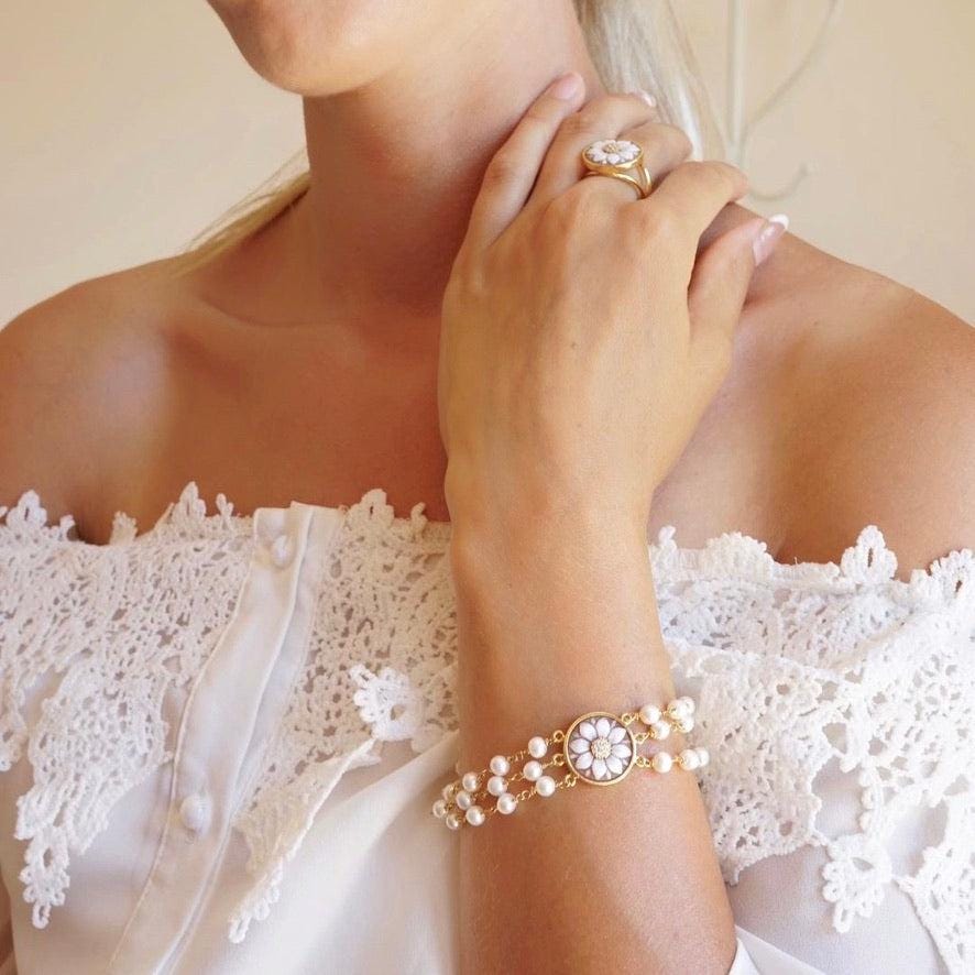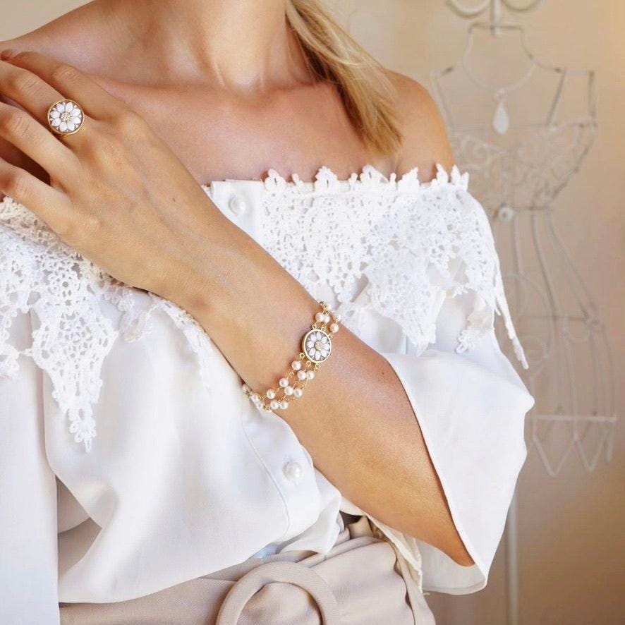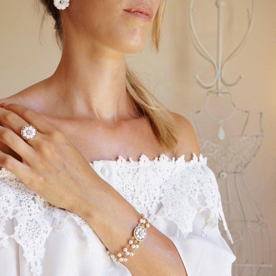 cameo pearl bracelet, handmade jewelry, bridal gift, bridal jewelry, handmade gift, personalised jewelry, made in Italy, waterproof bracelet