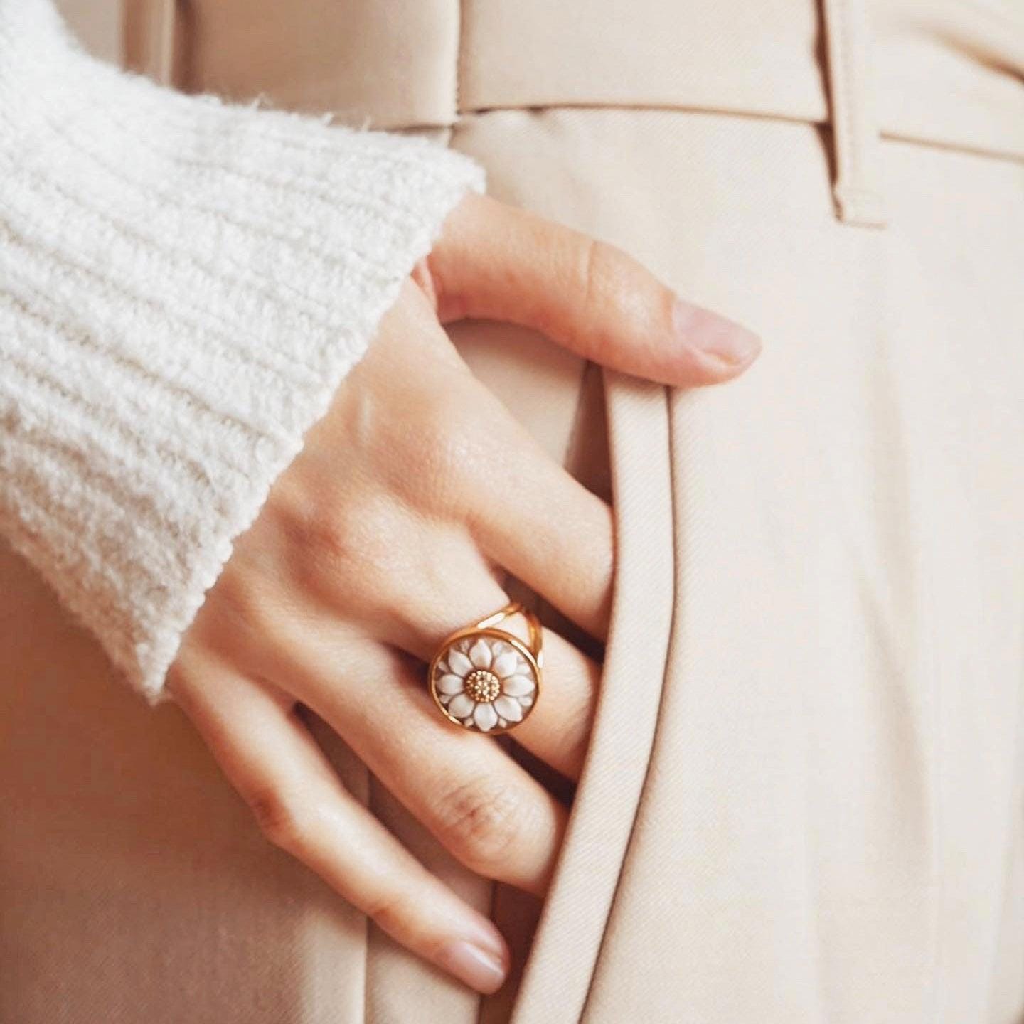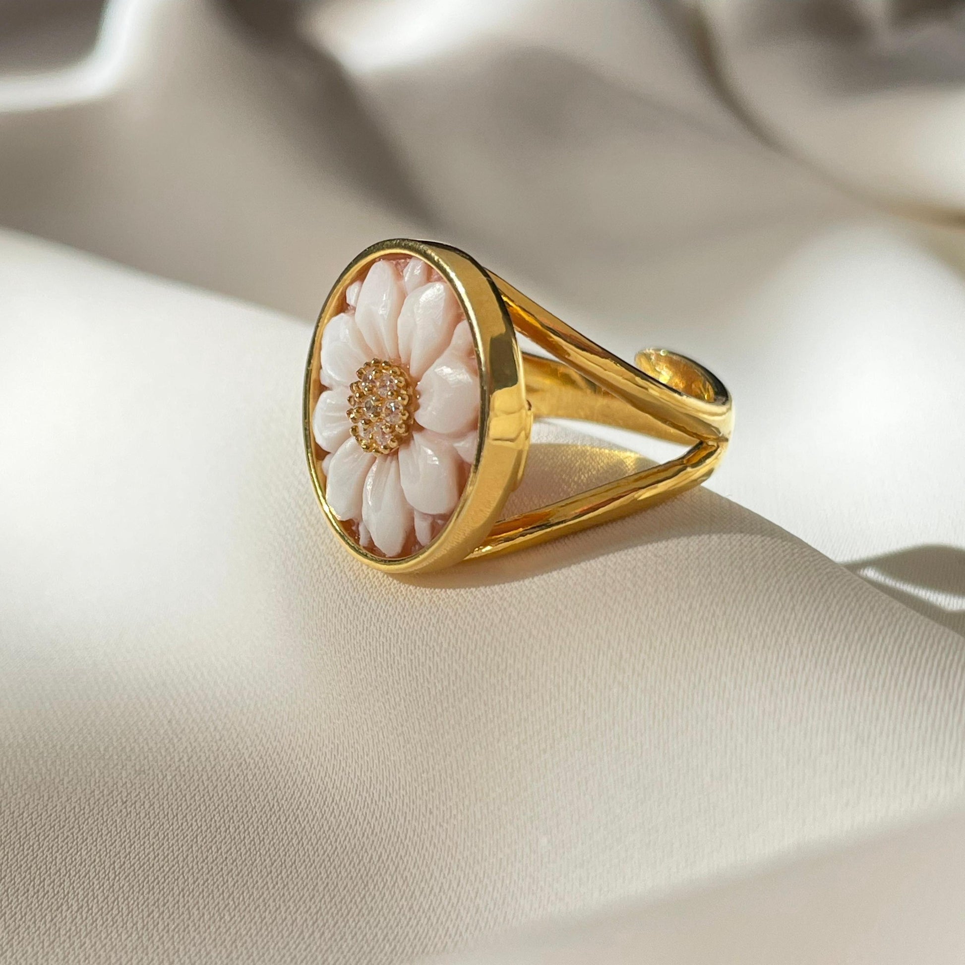 Cameo Ring, handmade gift, MADE IN ITALY, 18K gold ring, floral ring, wedding, minimalistic ring, unique bridal jewelry, waterproof ring