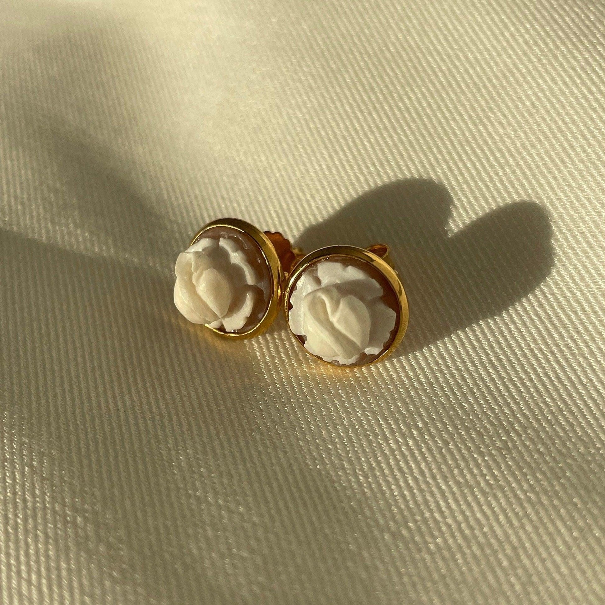 Cameo rose earrings earrings, gold stud earrings, anniversary, wedding gift, made in Italy, rose jewellery, minimalist golden earrings, mom