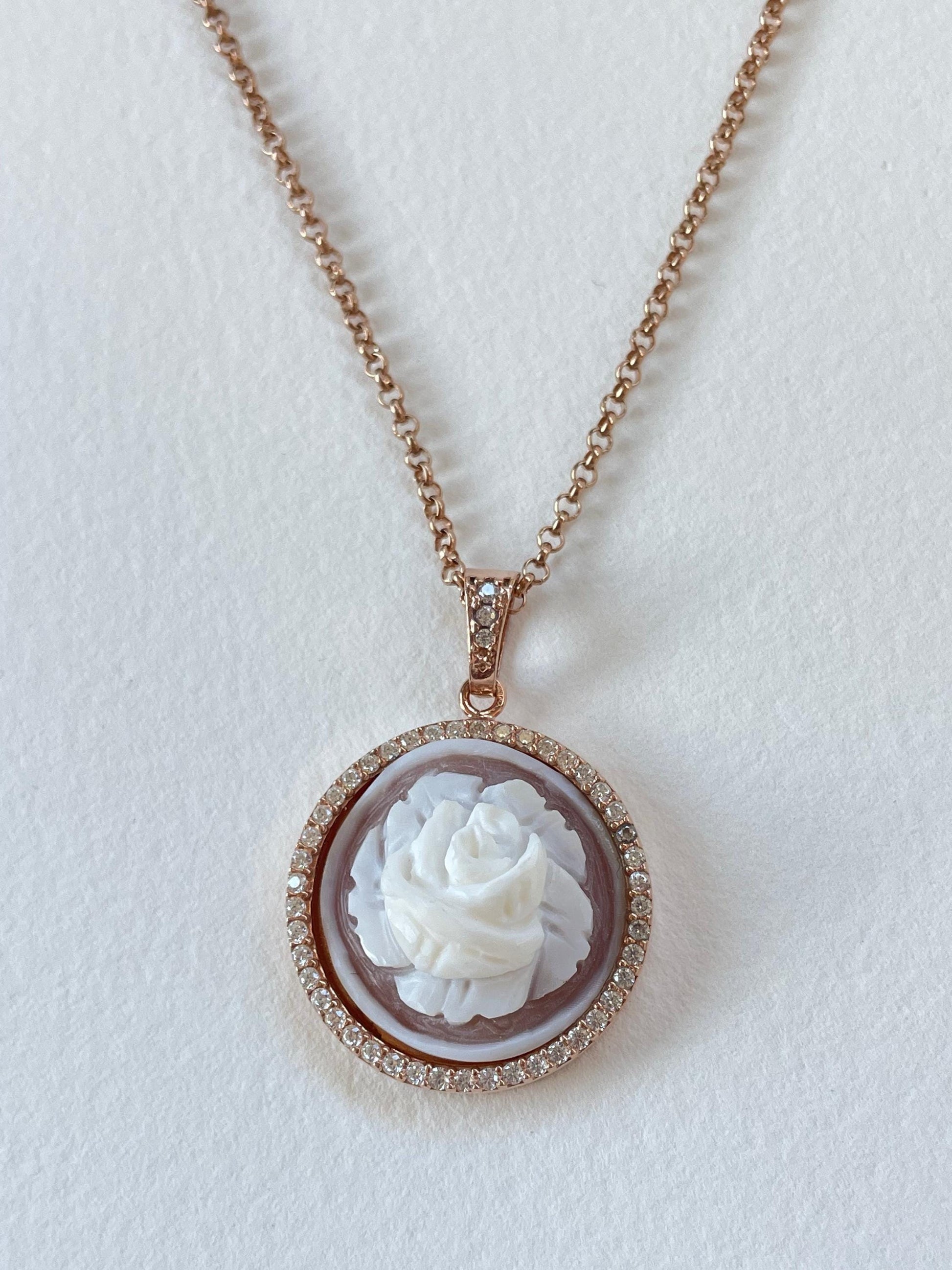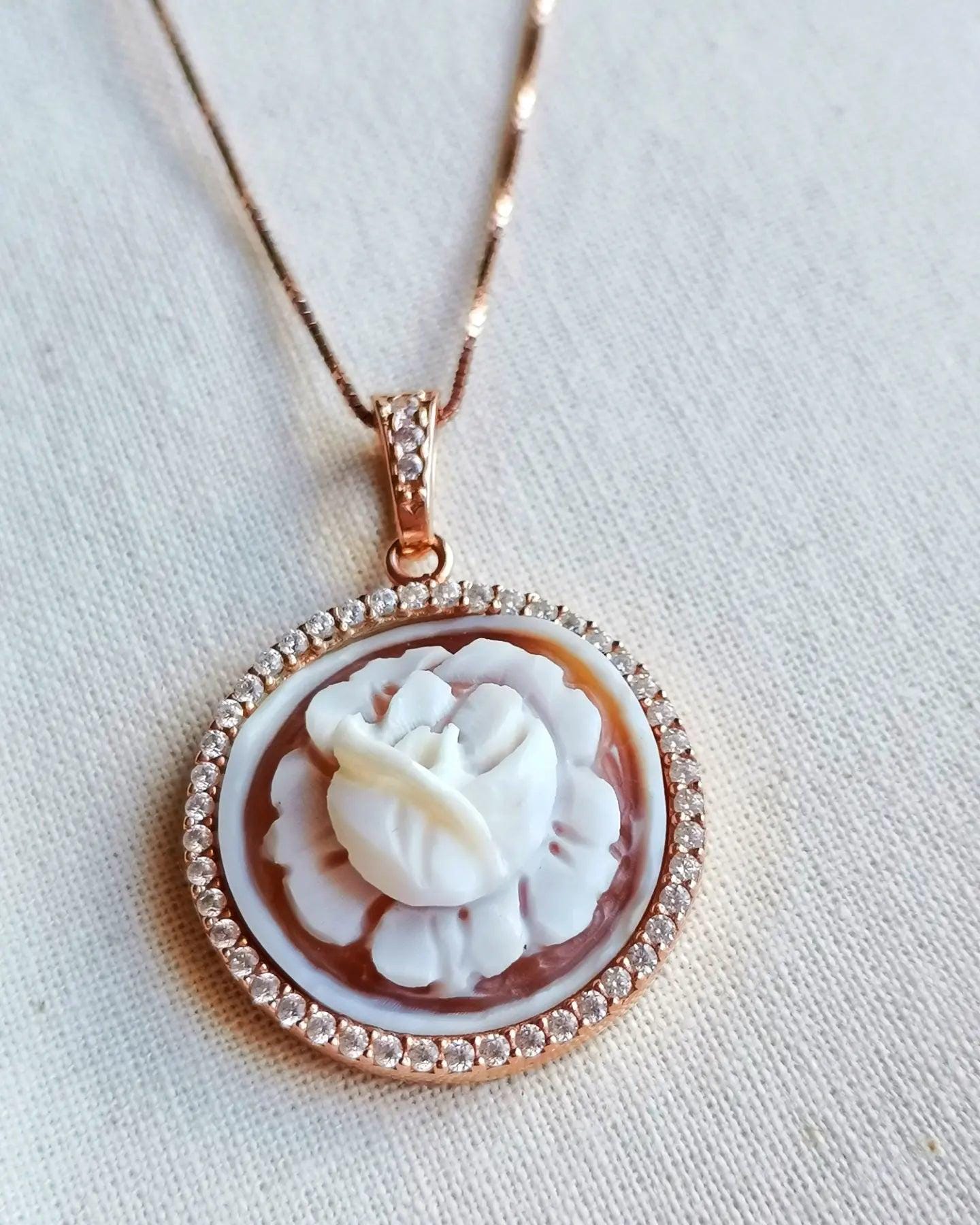 Cameo rose Necklace, handmade jewelry, rose gold cameo, unique wedding anniversary gift, made in Italy, rose pendant, cameo jewelry, mom