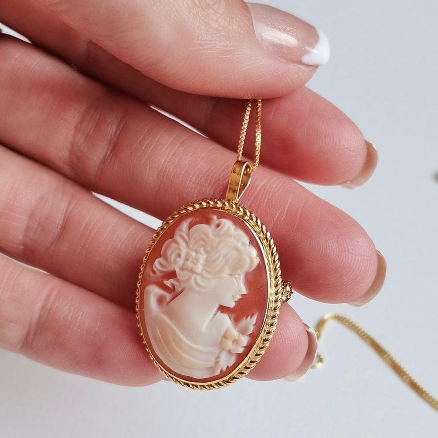 Classic Cameo set, 18K gold necklace, genuine cameo, handmade in Italy, sea shell cameo, wedding gift, jewelry set, daughter gift, mum gift