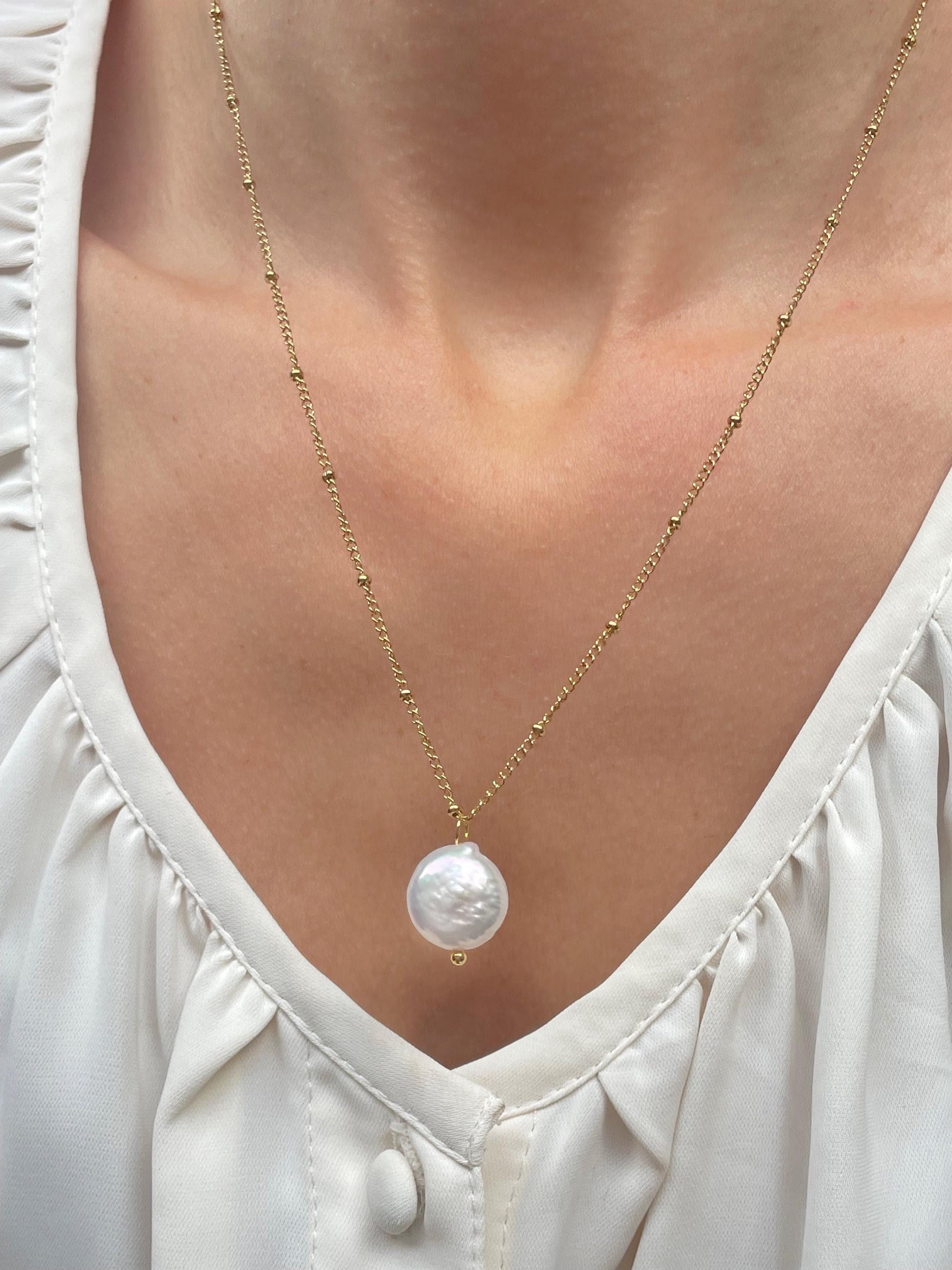 Whether worn for a special occasion or as an everyday statement, this necklace effortlessly elevates any outfit with its classic charm and understated beauty.