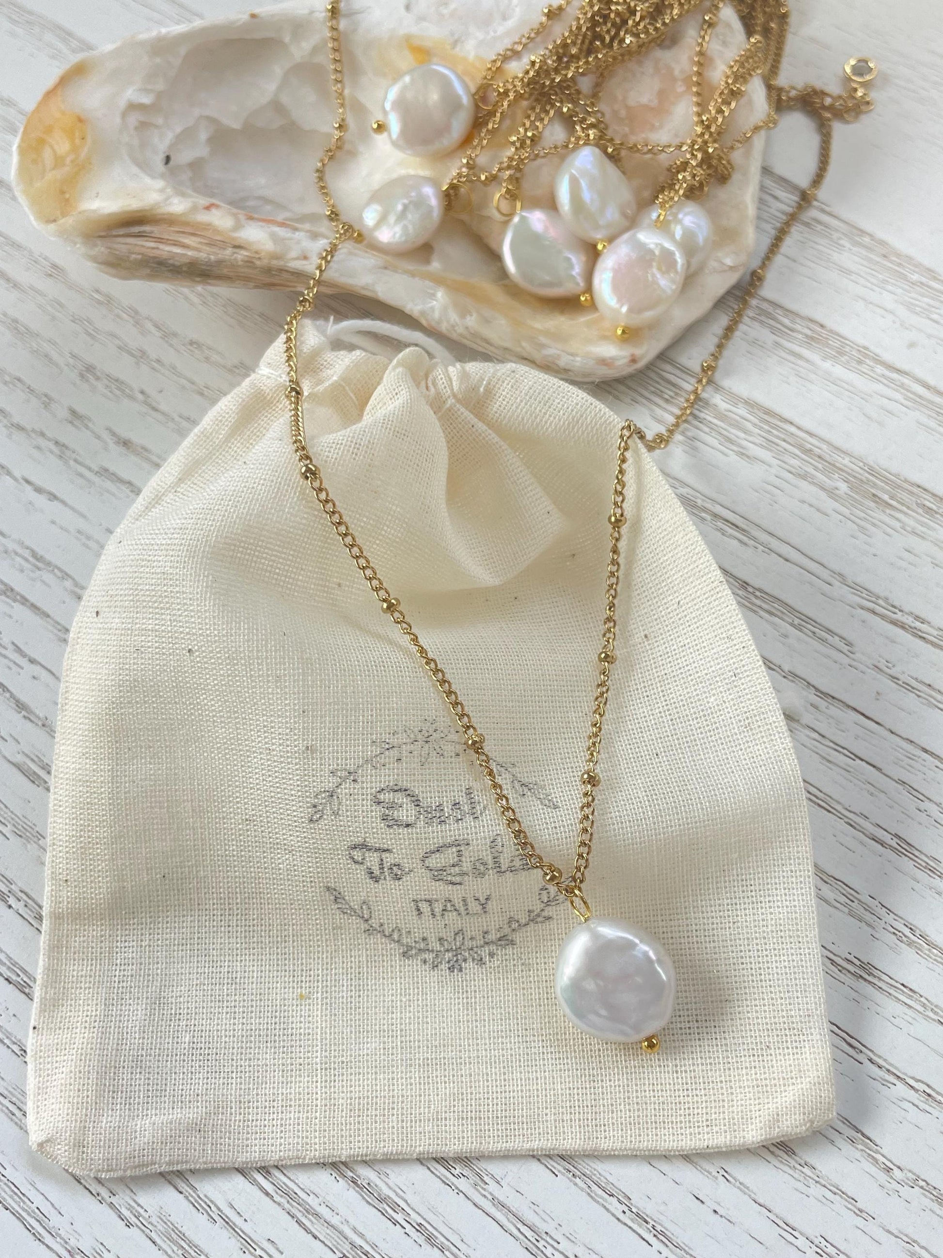 Dainty freshwater pearl necklace, pearl pendant, 18k gold necklace, waterproof golden necklace, hypoallergenic, made in Italy, sister gift