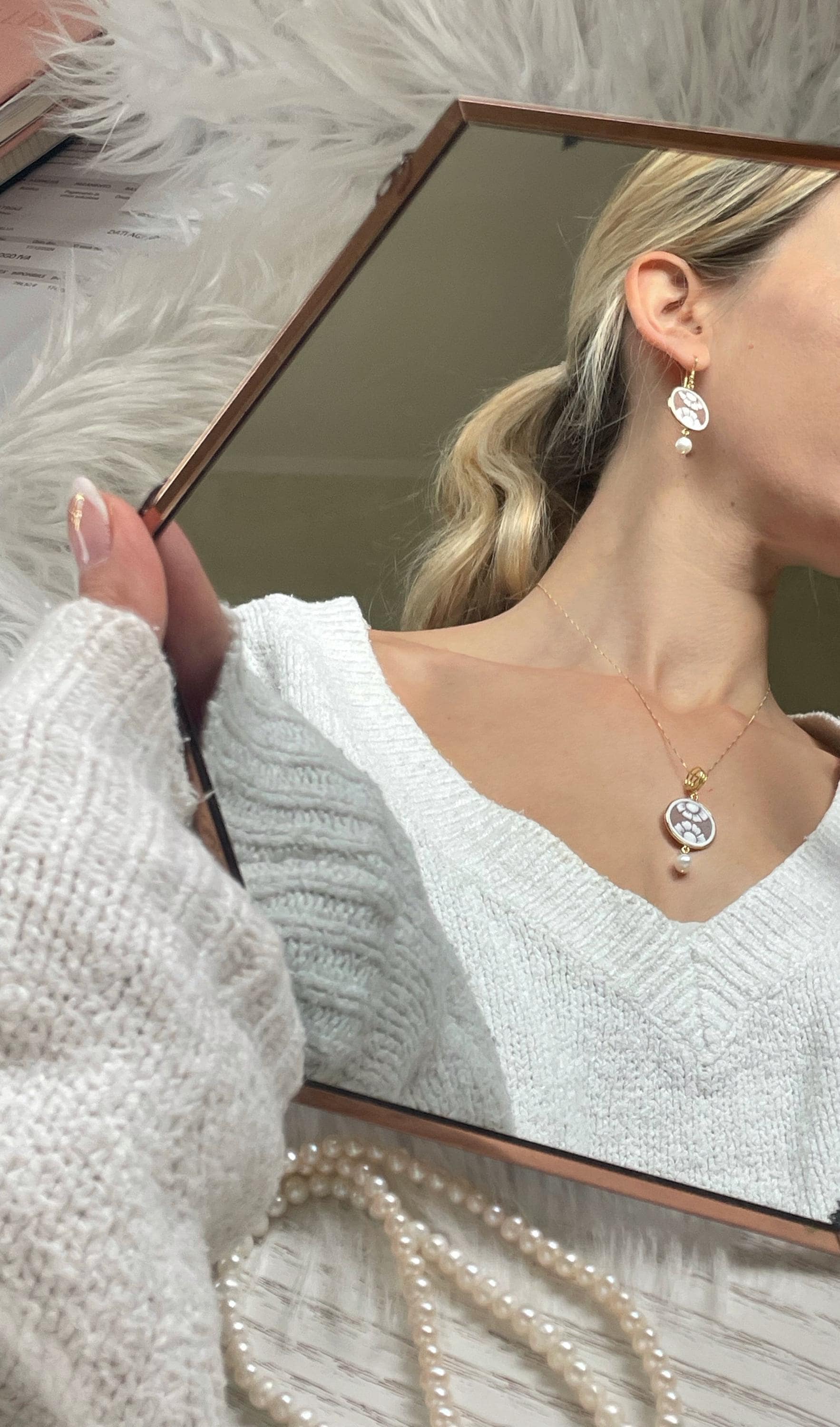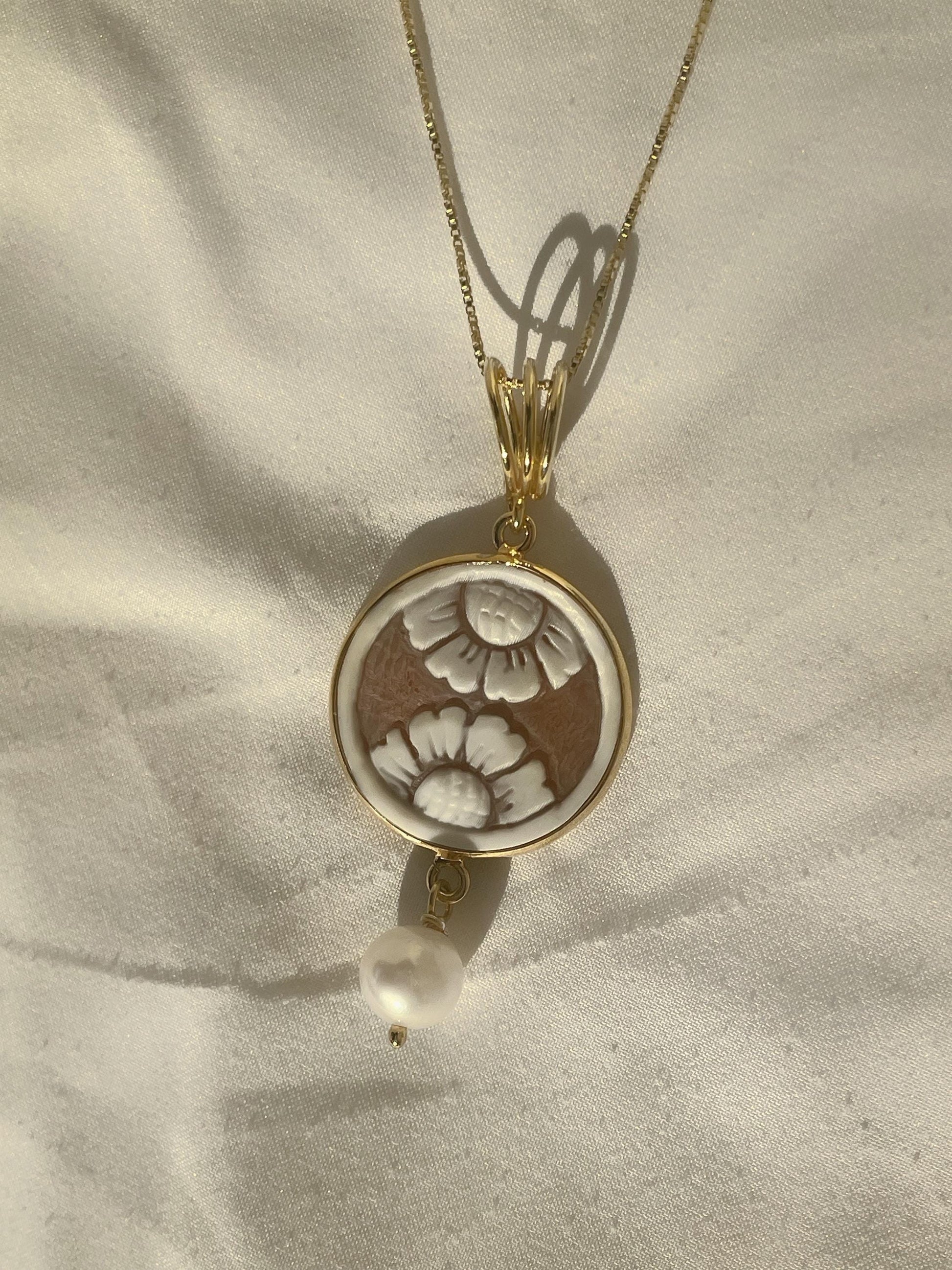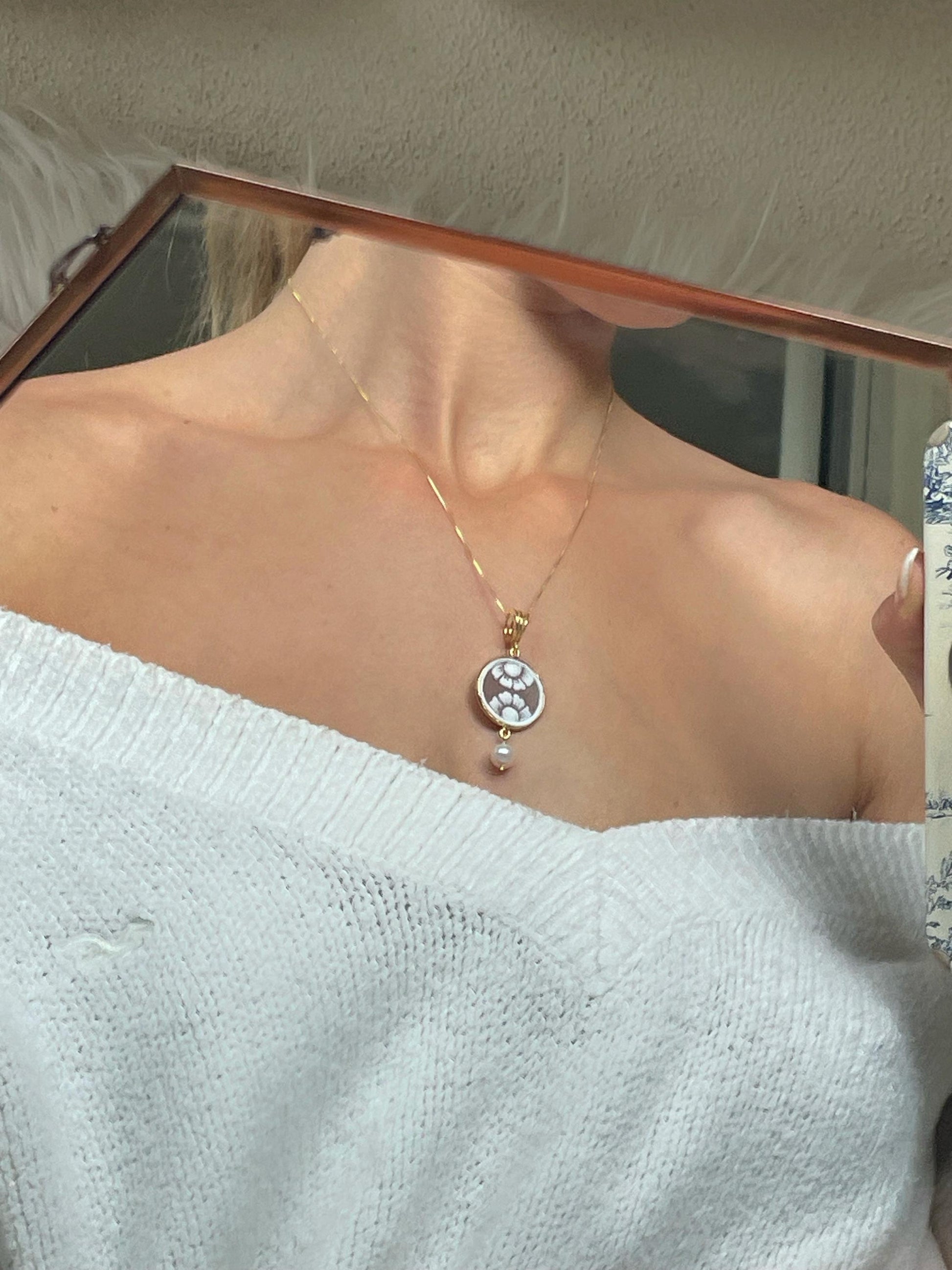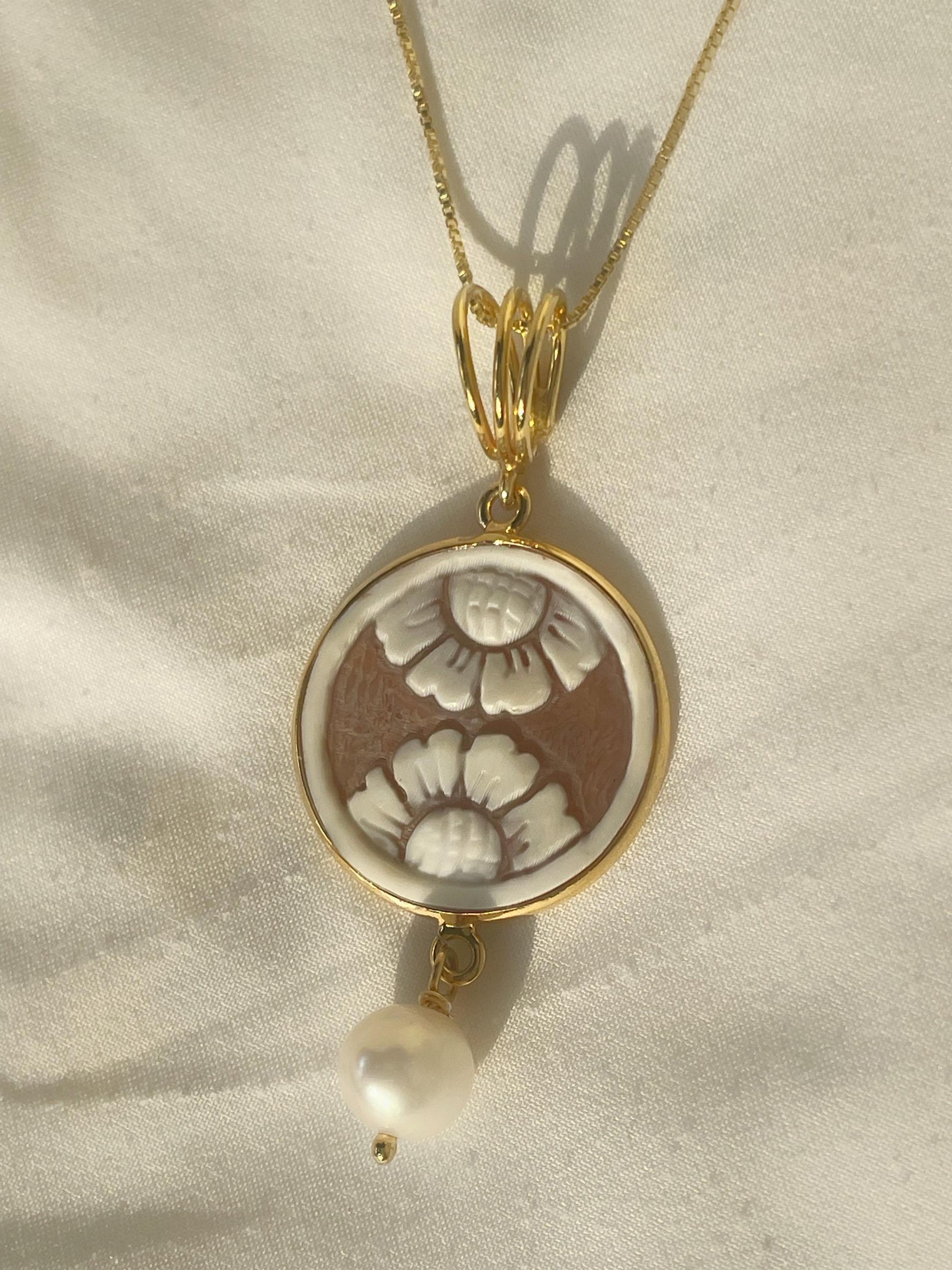 Dainty necklace, Floral cameo necklace, personalised gift for her, bridal necklace, wedding, genuine Italian cameo, jewelry gift set, pearl
