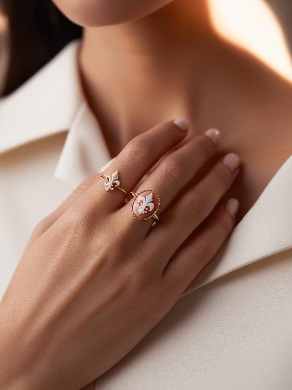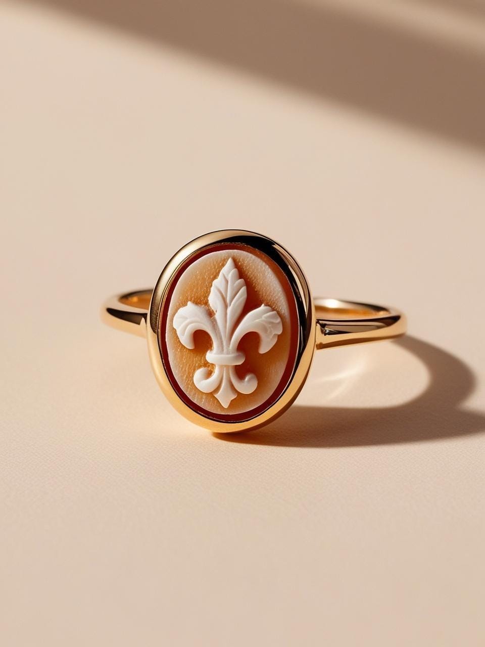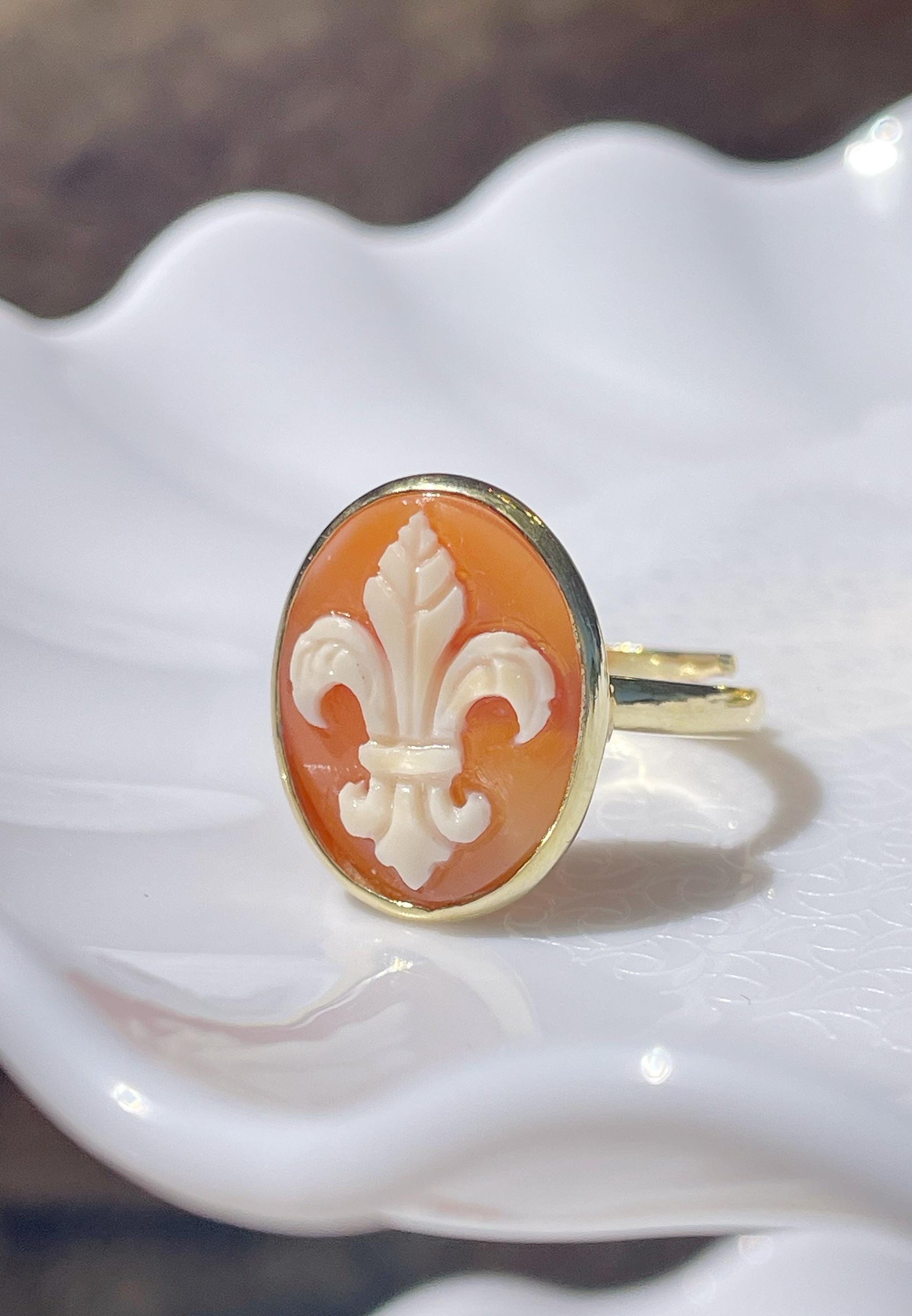 Fleur de Lis Cameo Ring, vintage ring, made in Italy, handmade ring, fiorino, unique handmade gift for mother, 18K gold, waterproof ring