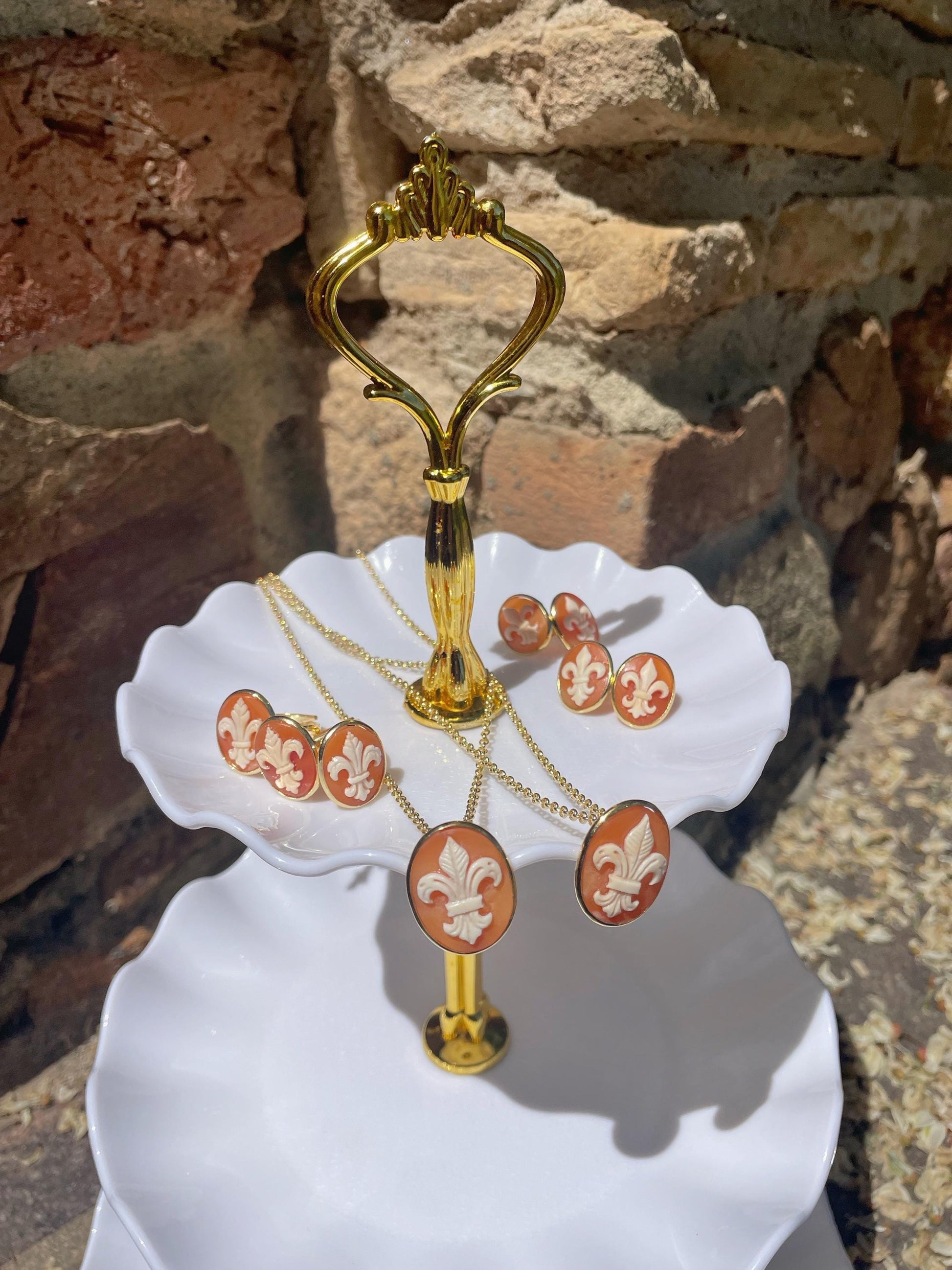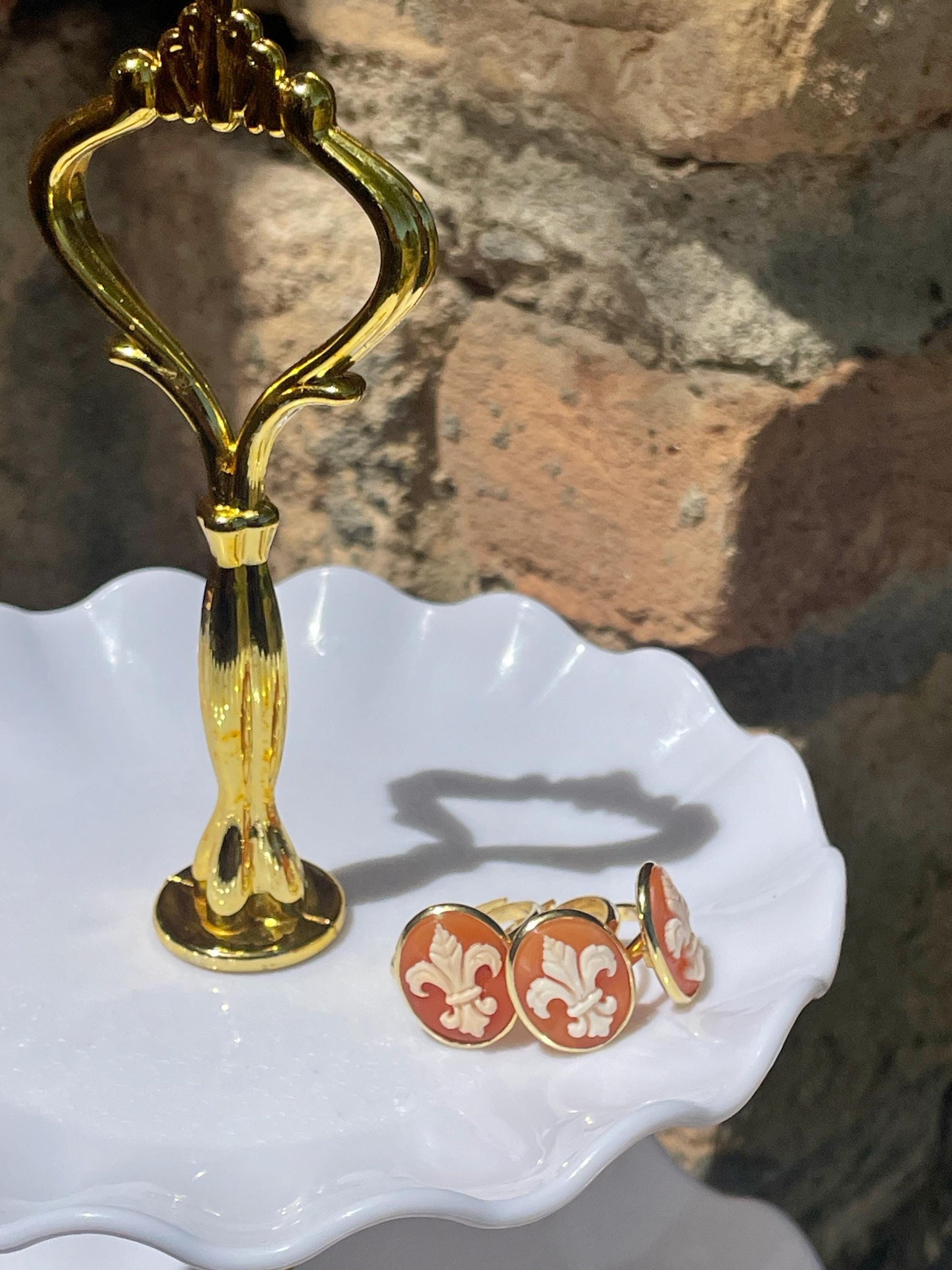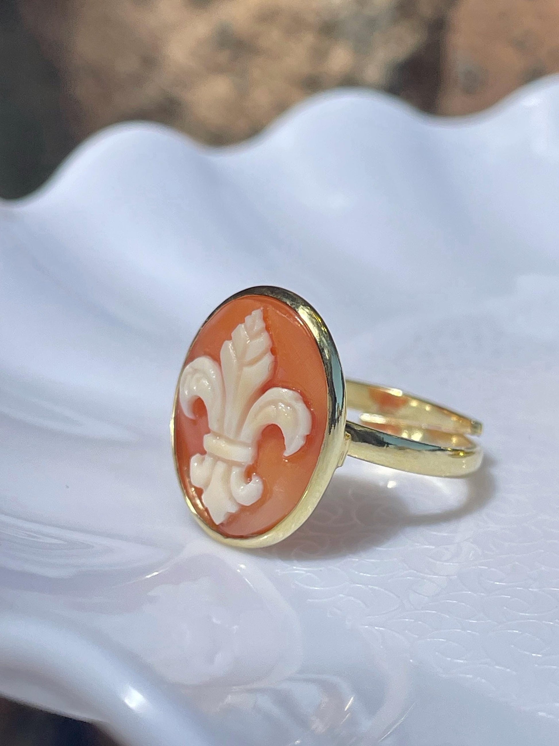 featuring the iconic Fleur de Lis cameo ring originating from Florence, Italy! Authentically handcrafted in our workshop in Italy , featuring a cameo ring with an adjustable 18k gold plated silver sterling band!