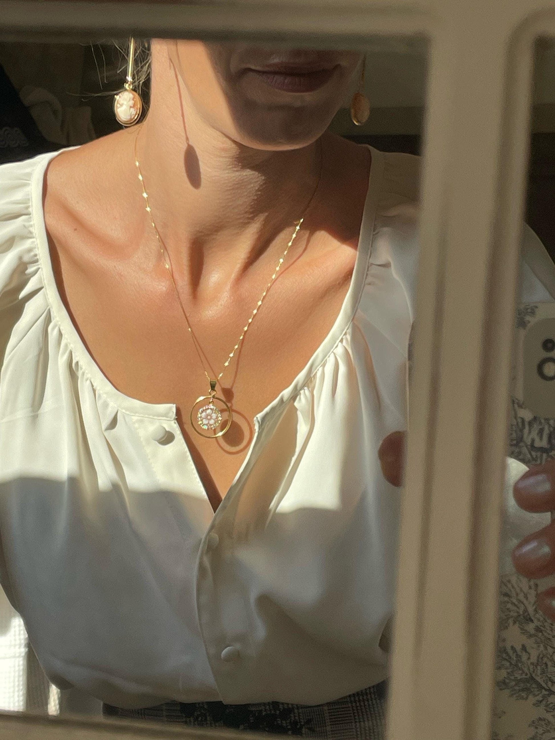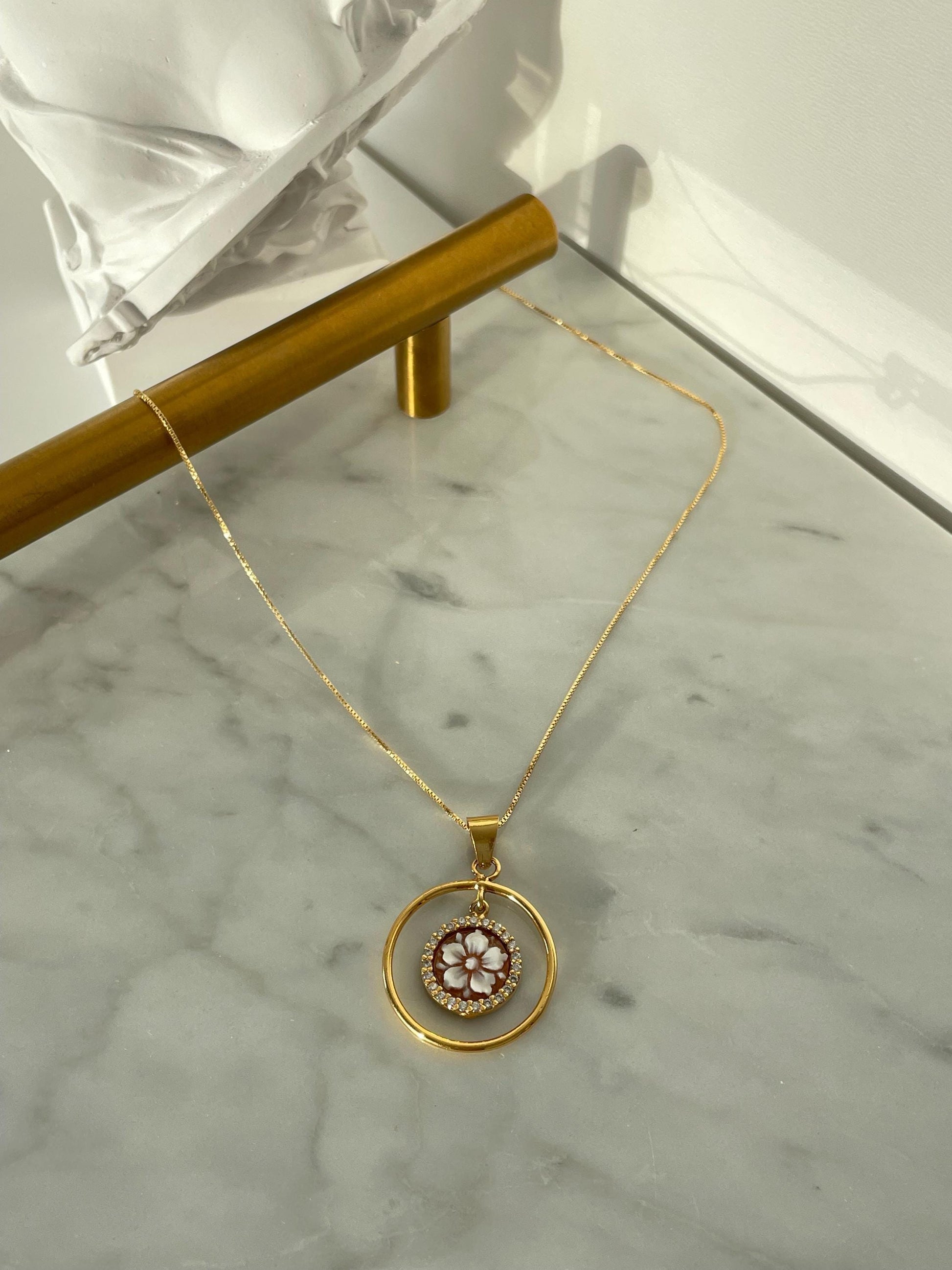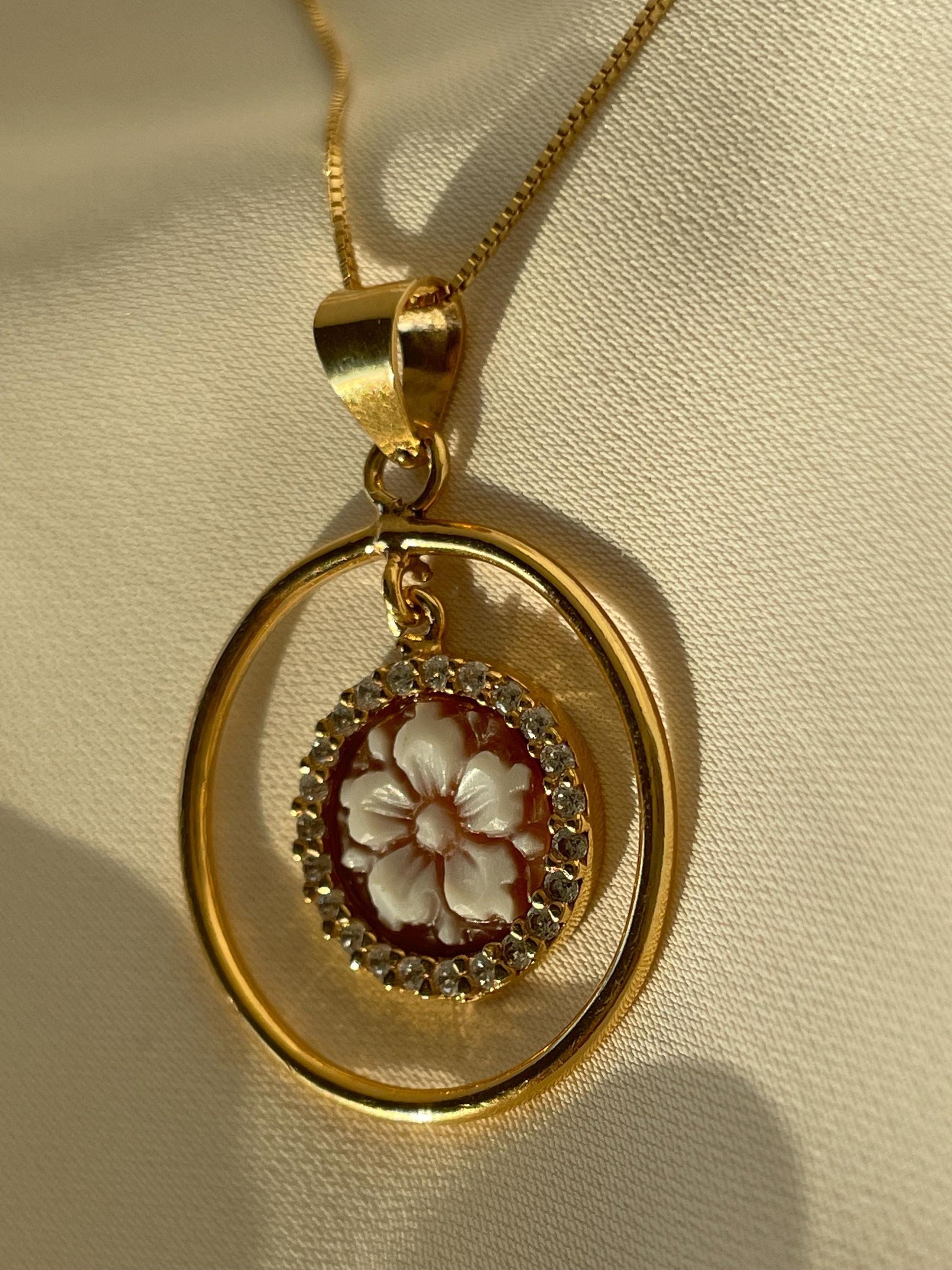 Floral Cameo necklace, minimalistic dainty necklace, gold jewelry, gift for her, made in Italy, bridal jewellery, wedding gift, personalised