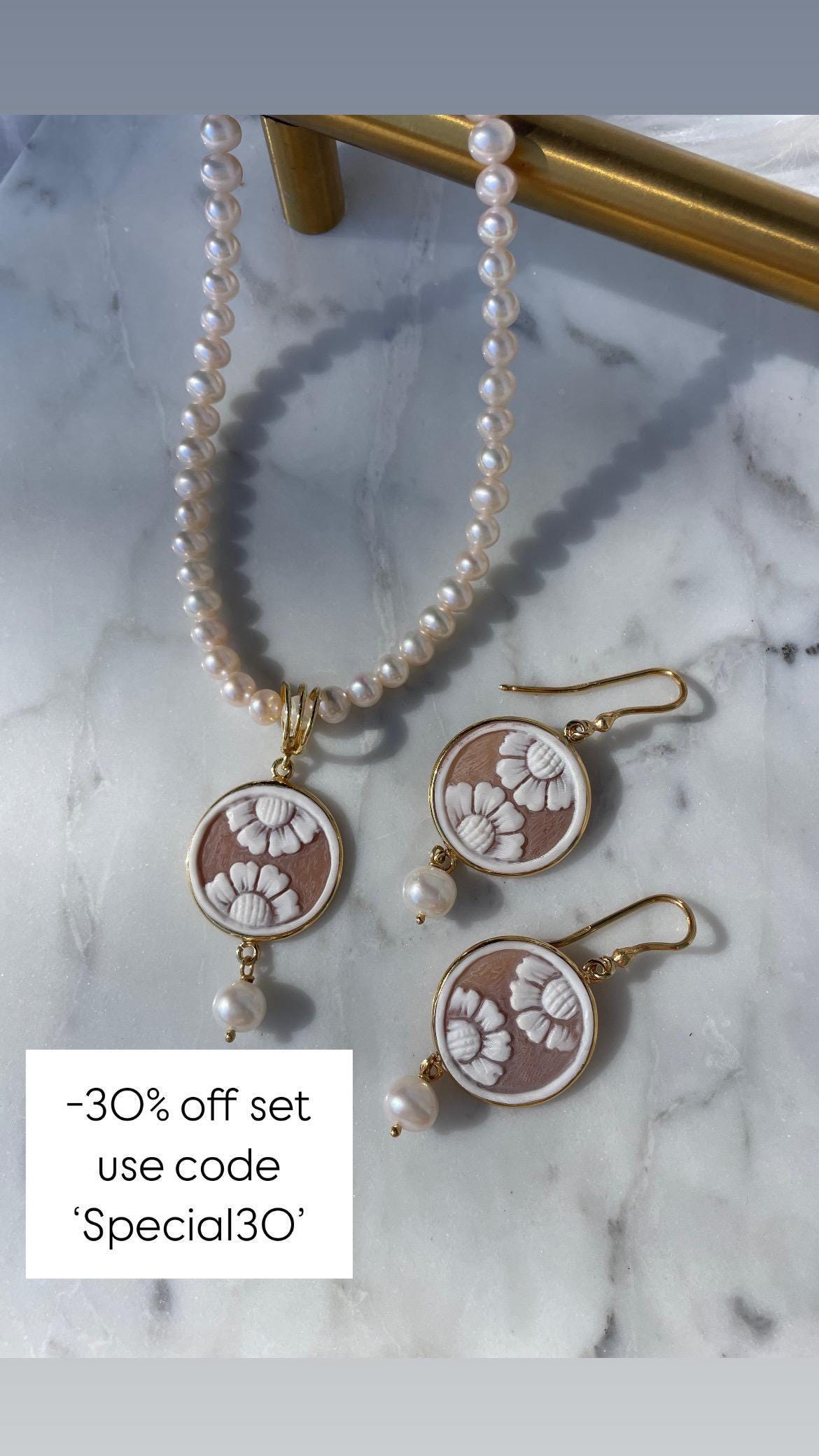 Floral cameo set, freshwater pearls, personalised gift for her, bridal necklace, wedding, dainty necklace, jewelry set, cameo jewelry, mom