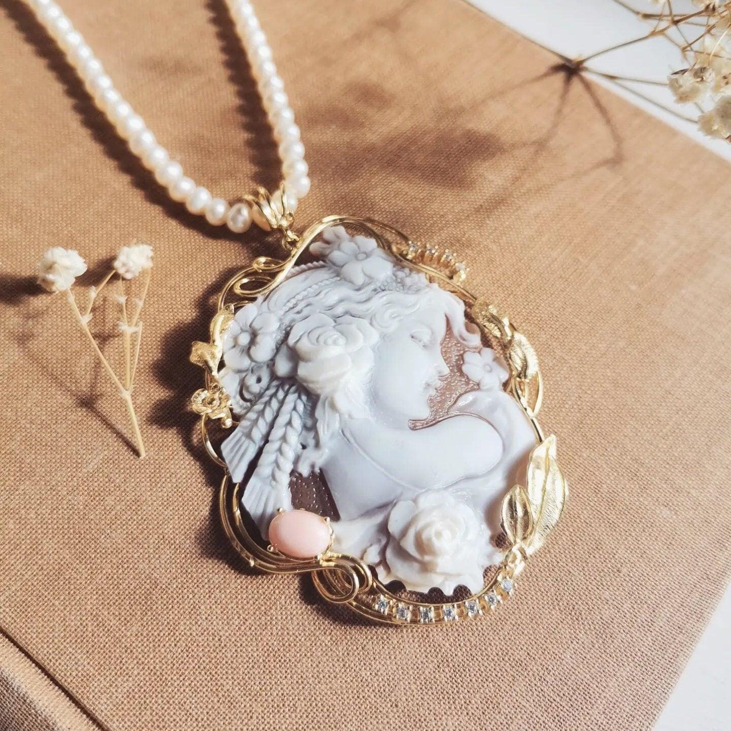 Handcrafted in Torre Del Greco, the historic “Cameo Village” of Naples, Italy, this piece carries forward a centuries-old tradition where master artisans transform seashells into timeless portraits.