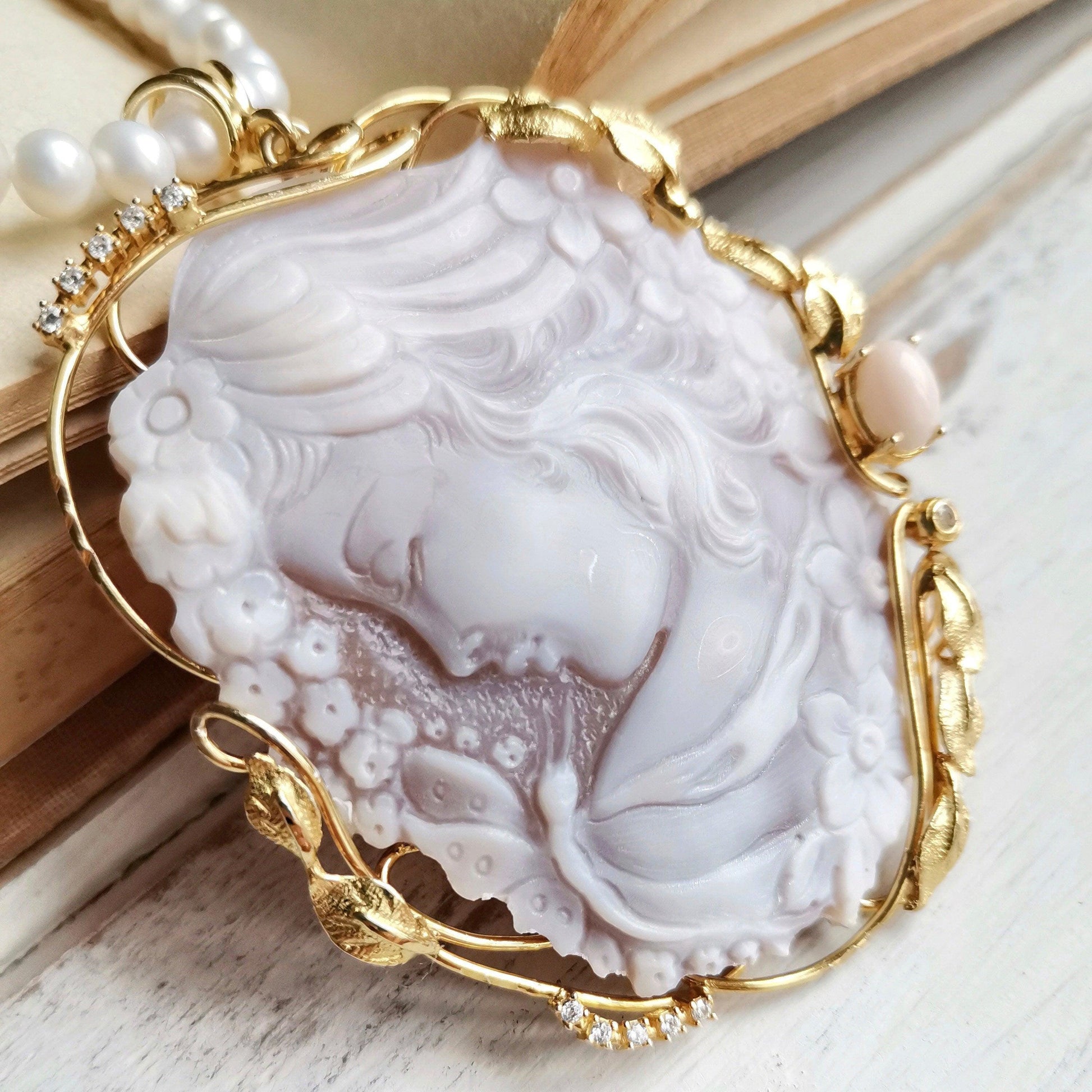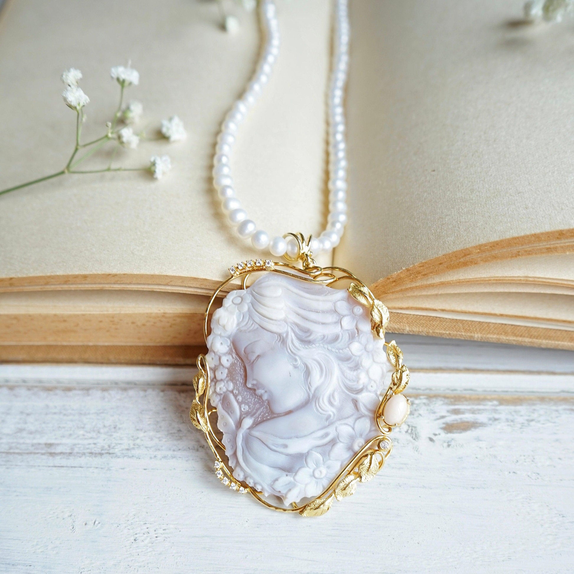 Genuine cameo jewelry necklace, Girl with butterfly, silver sterling 925, personalised gift for her, bridal wedding jewelry, coral necklace