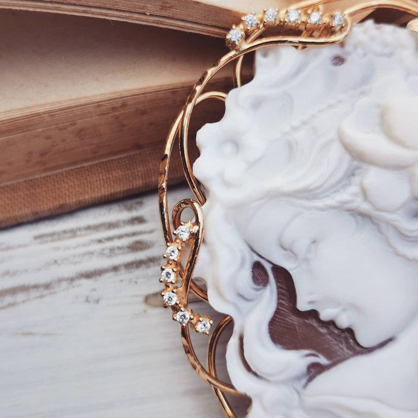Carved by hand. Chain and hinge attaching cameo to necklace are silver sterling 925.