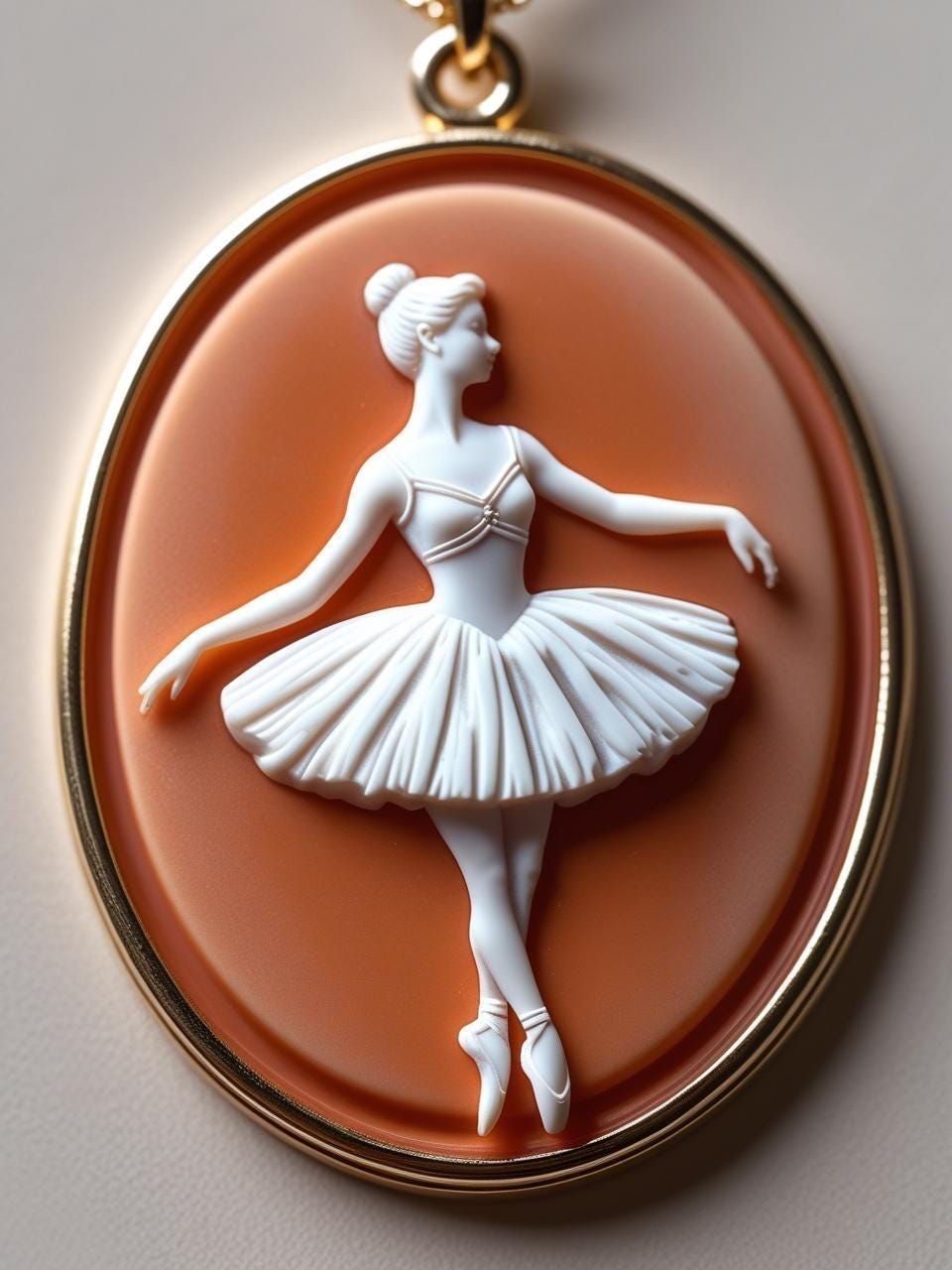 Each detail — from the ballerina’s poised posture to the floral accents that frame her — is lovingly hand-carved by skilled Italian artisans. The frame is crafted from sterling silver and plated with 18K gold, offering a refined and luxurious finish that enhances the cameo’s classical charm.