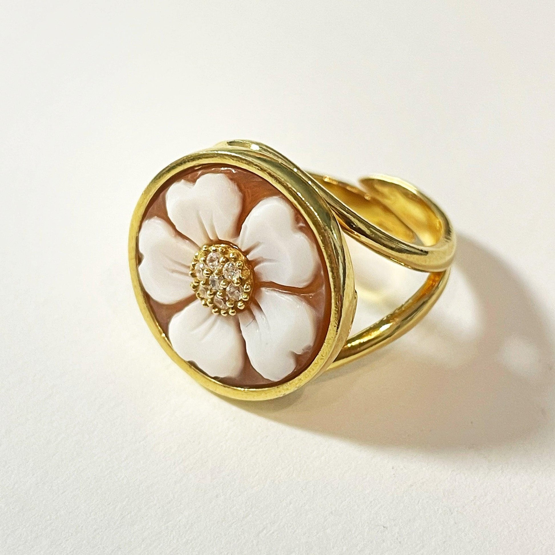 Handmade cameo adjustable ring, 18K golden ring, made in Italy, gift for her, wedding anniversary gift, silver sterling 925, custom jewelry
