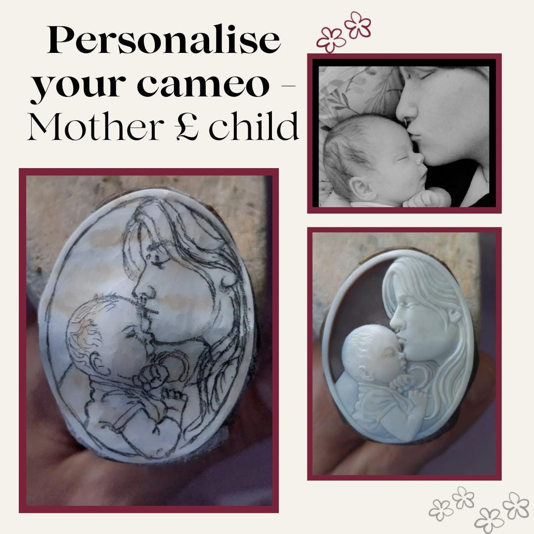 If you want to see other ideas for handmade carved personalized cameos, visit our "Personalize Cameo" section of this store.