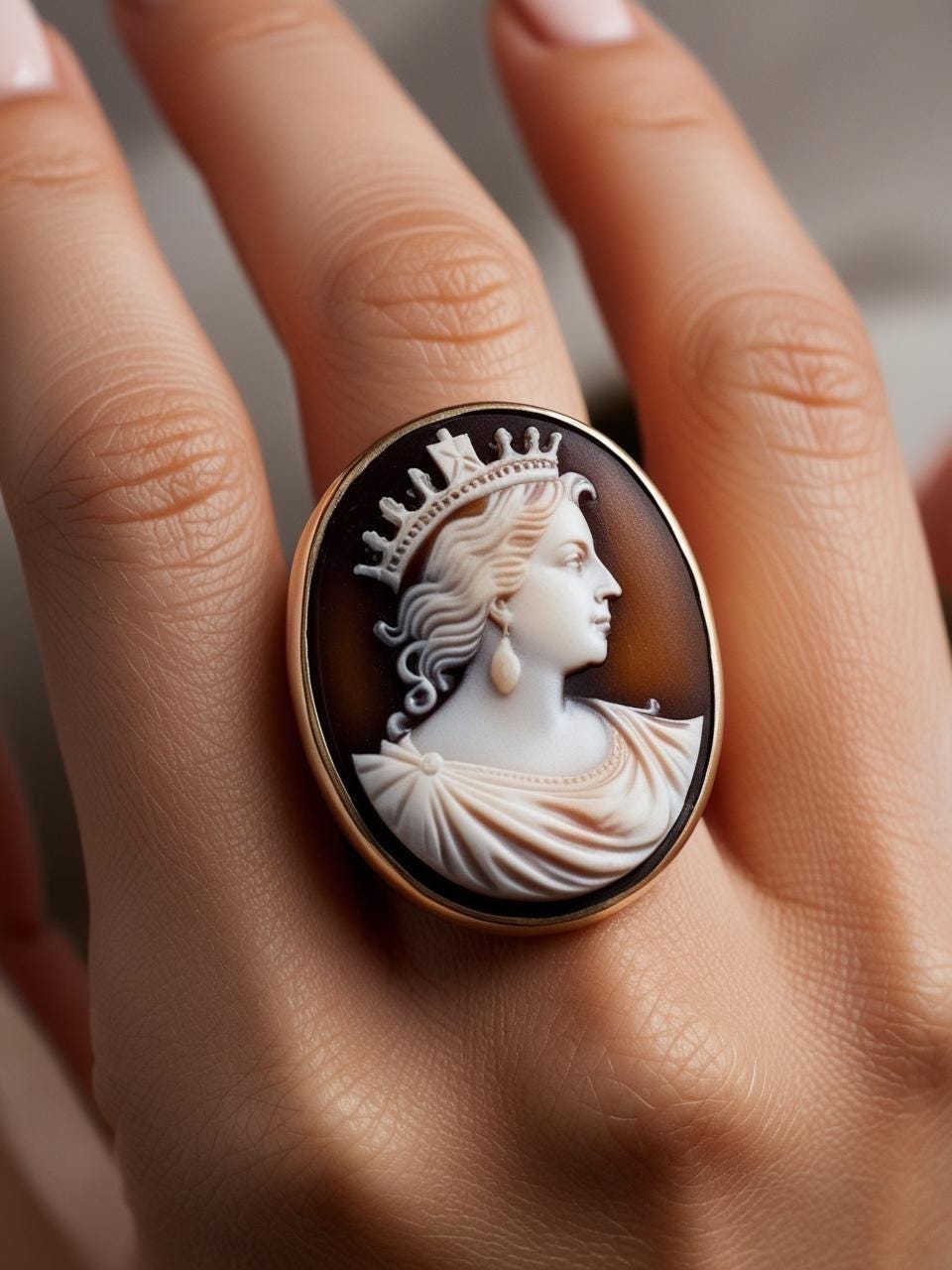 Queen Victoria Cameo Ring, Victorian, made in Italy, handmade ring, royal family, unique handmade gift for mother, 18K gold adjustable, mom
