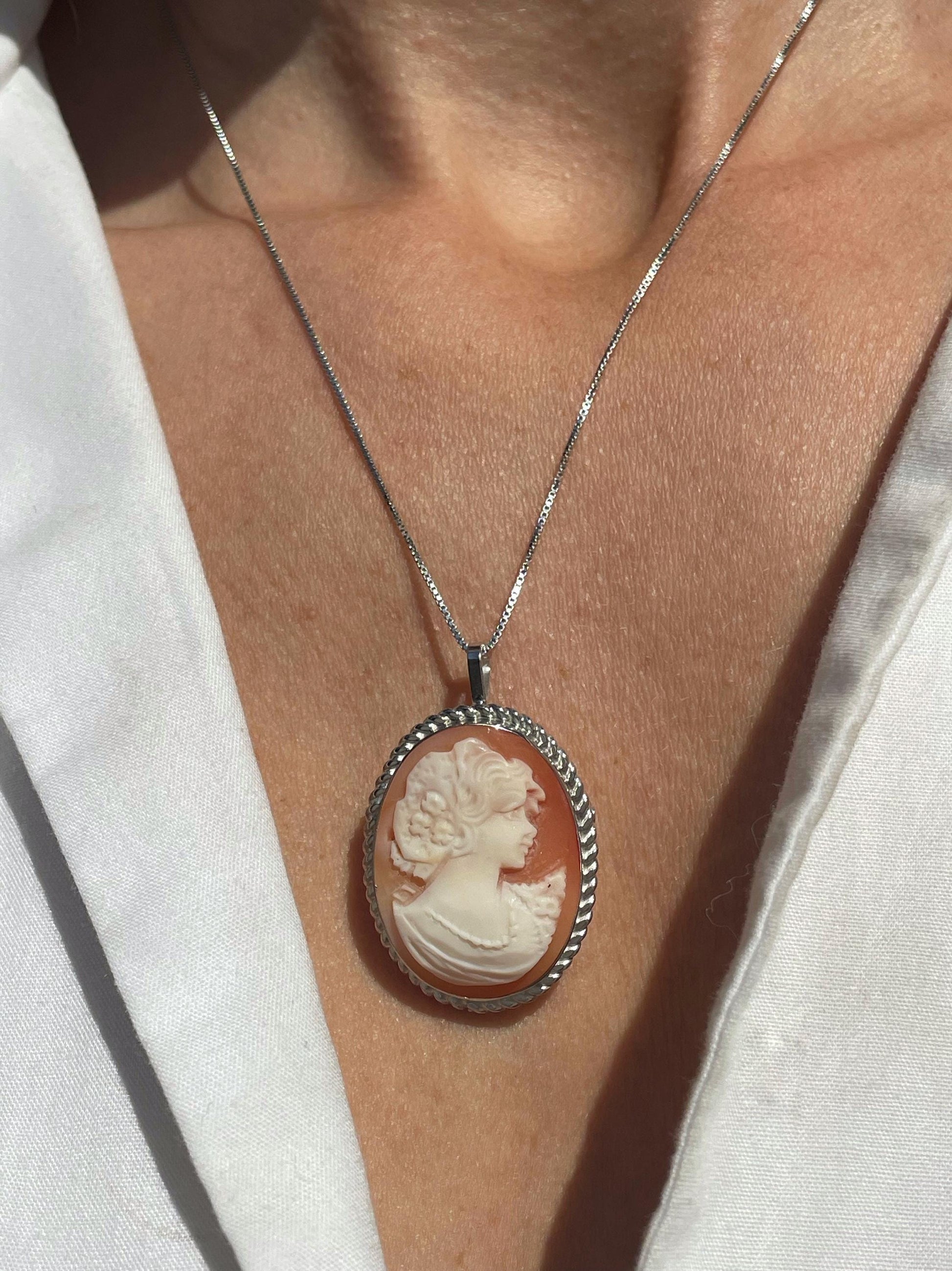 Vintage Cameo necklace, genuine cameo, handmade gift, sea shell cameo, pin brooch cameo, bridal jewelry, fall wedding, unique gift for her
